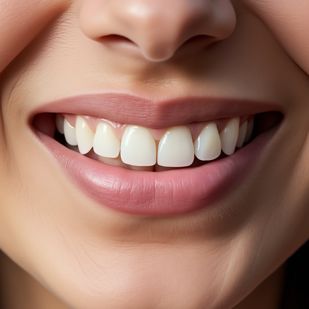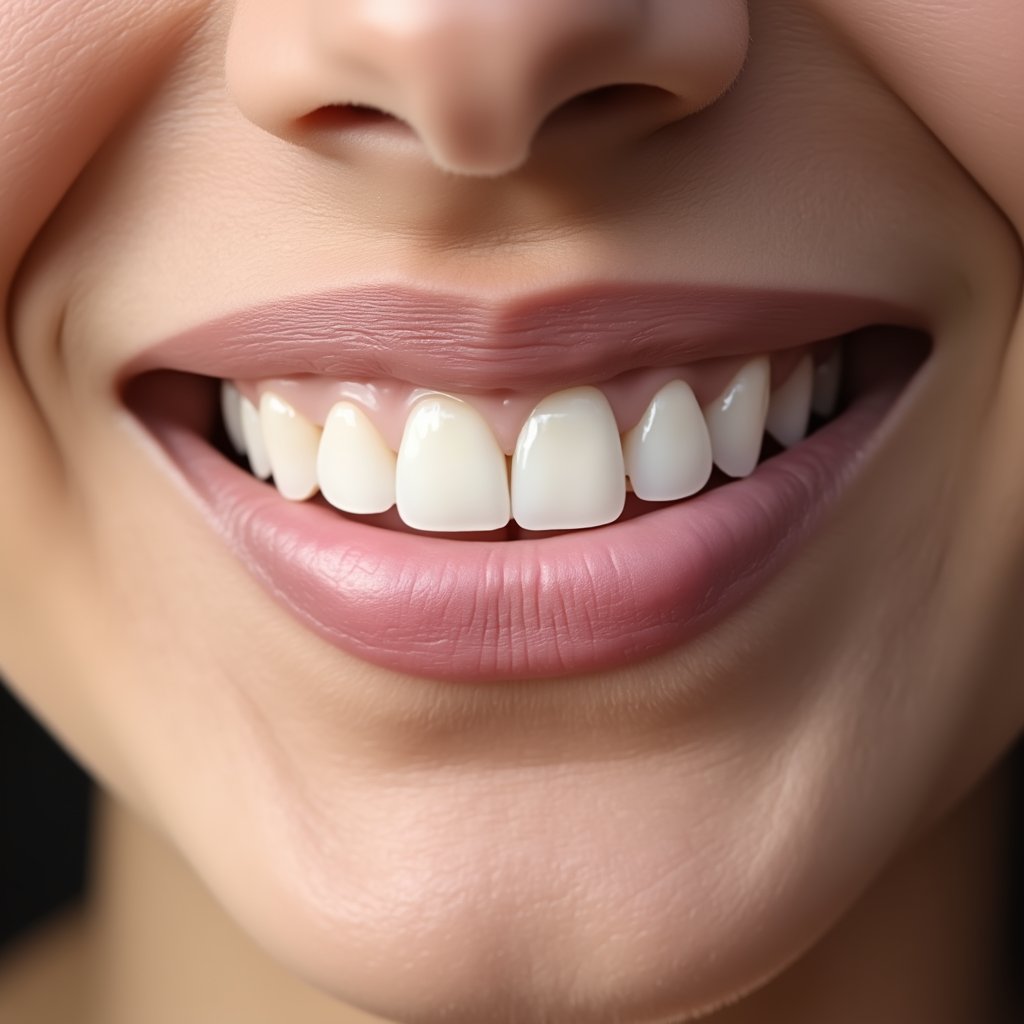 real female macro smile, ultra-detailed close-up, natural tooth spacing, accurate enamel texture, glossy saliva highlights, soft pink textured lips, subtle gum visibility, realistic mouth anatomy, 8k macro beauty photography, flux precision