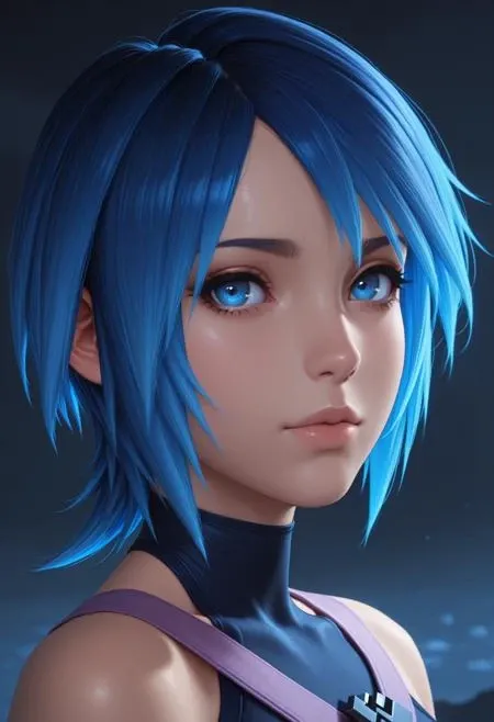 KH3Aqua, 1girl, blue hair, blue eyes, short hair