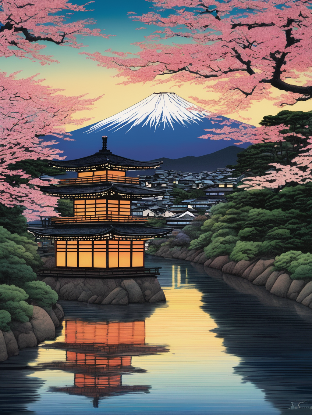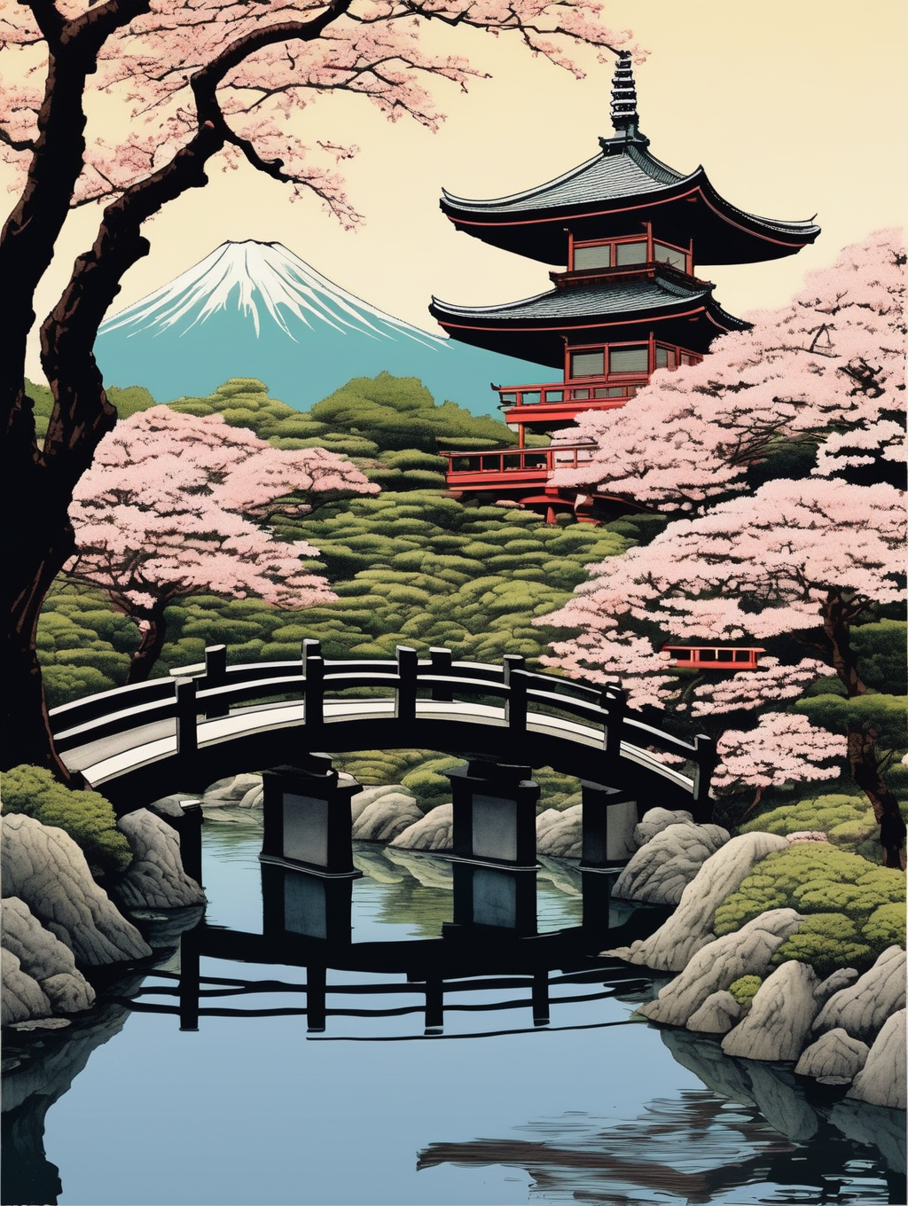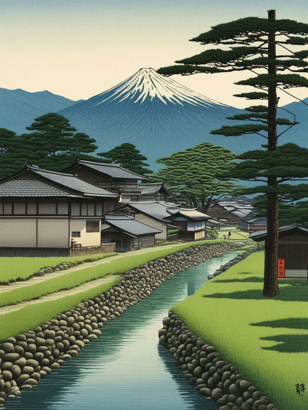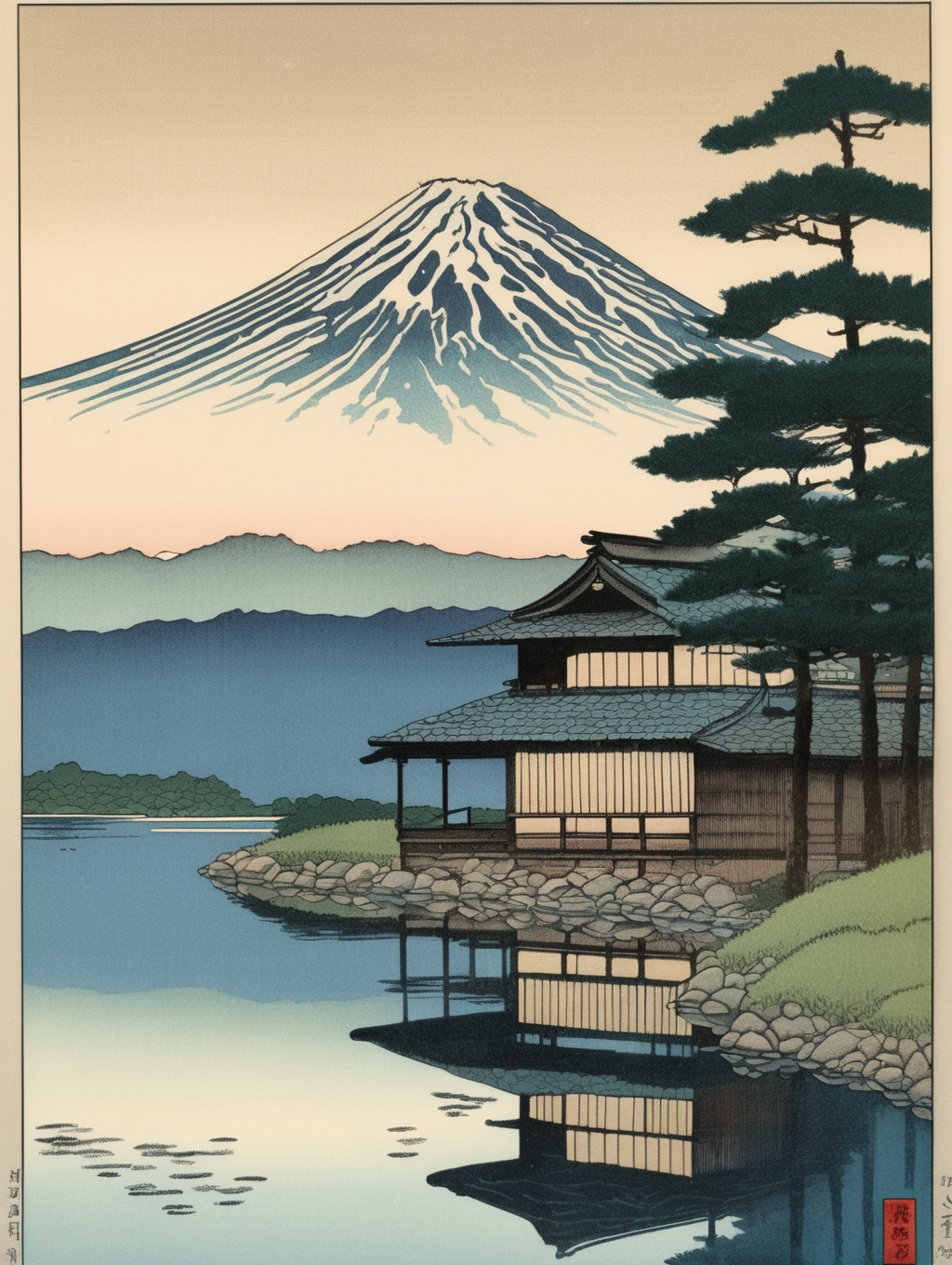 Hasui's prints primarily depicted landscapes and scenes of rural and urban Japan. His works captured the beauty of various seasons, including snow scenes, moonlit nights, and serene landscapes. He had a remarkable ability to convey the atmosphere and mood of a place, infusing his prints with a sense of tranquility and contemplation.
