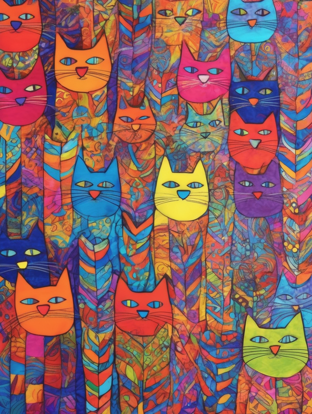 Burch's artwork is characterized by its bold use of color, intricate patterns, and stylized representations of animals, particularly cats. Her designs often incorporated elements of fantasy and spirituality, reflecting her belief in the healing power of art.