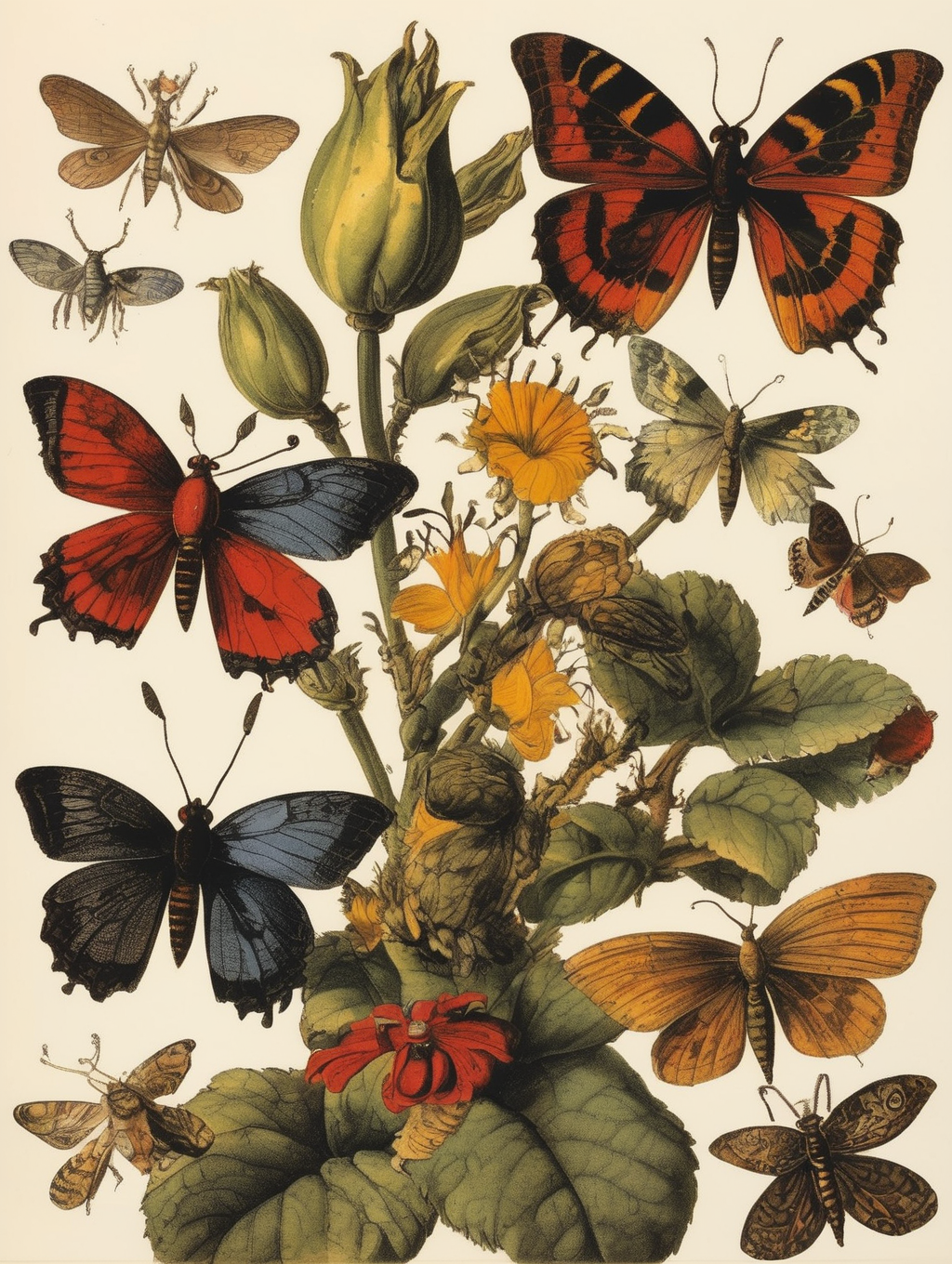 Merian's artistic style was highly detailed and lifelike, showcasing the beauty and complexity of the insects and plants she depicted. She had a keen eye for capturing the intricate patterns and colors of the natural world, and her illustrations are still admired for their scientific accuracy and artistic beauty.
