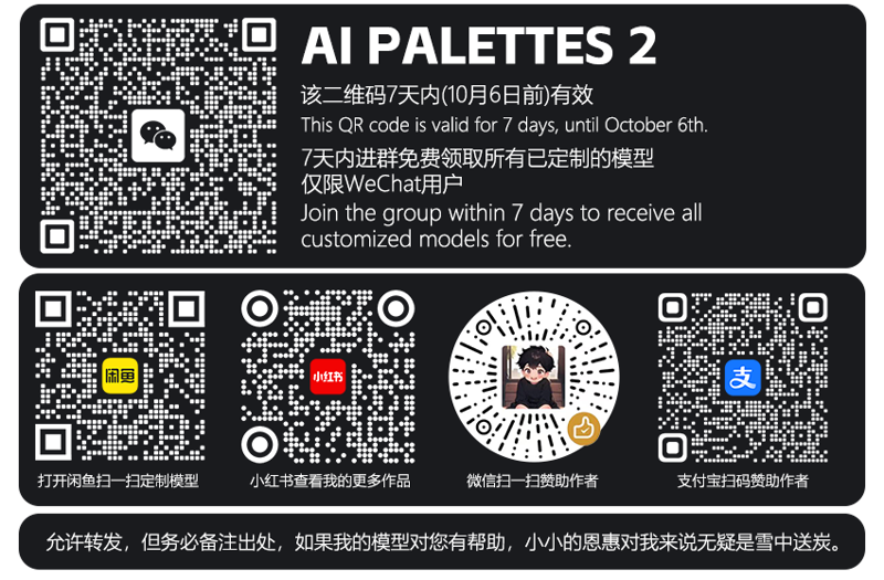 Join the group within 7 days to receive all customized models for free.Limited to WeChat users.