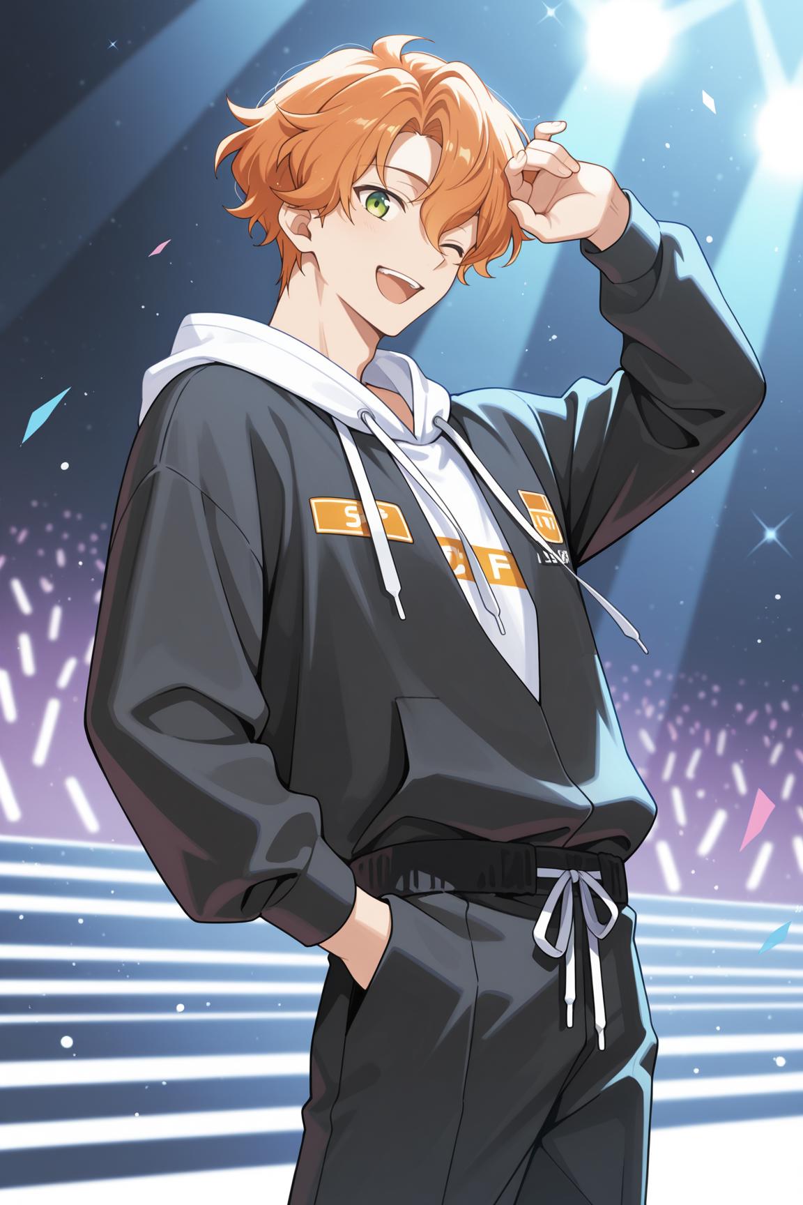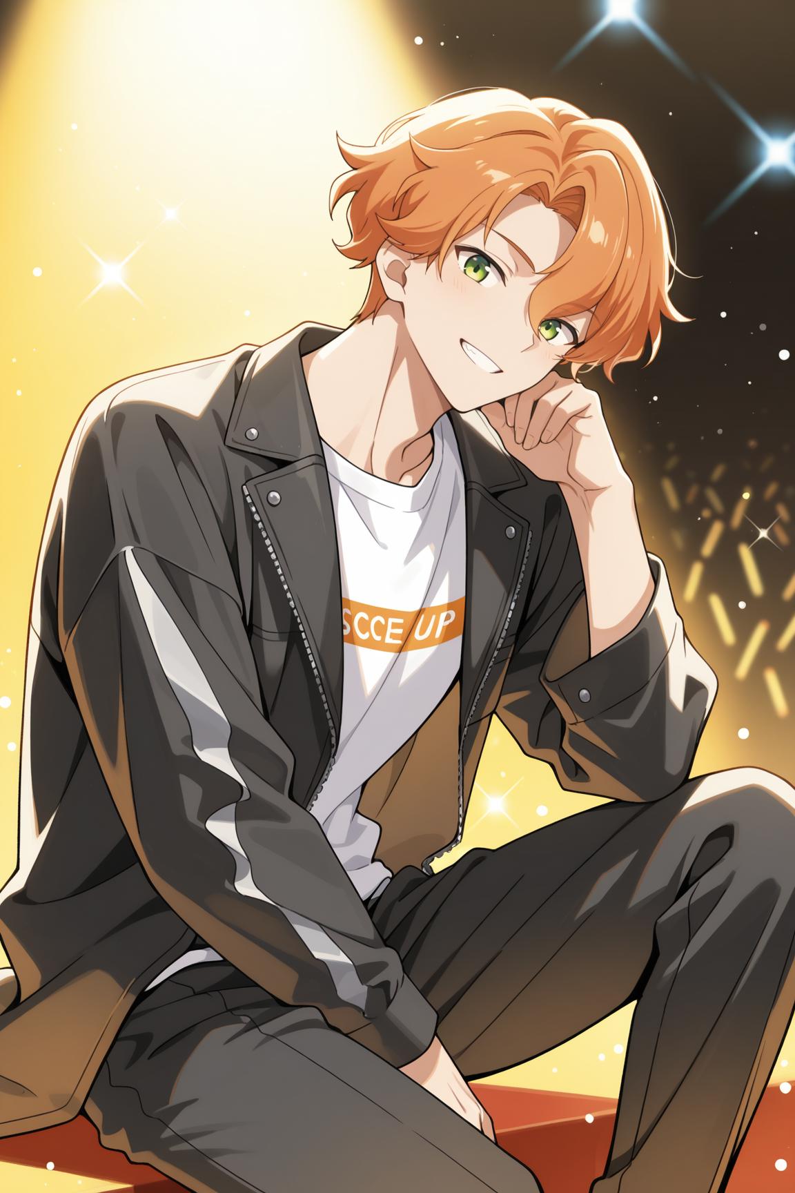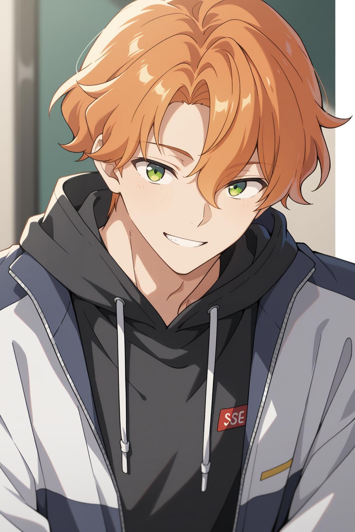 Gakuto, gakuto_haruka, orange hair, green eyes, parted bangs, hair between eyes