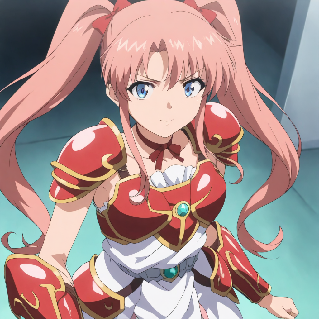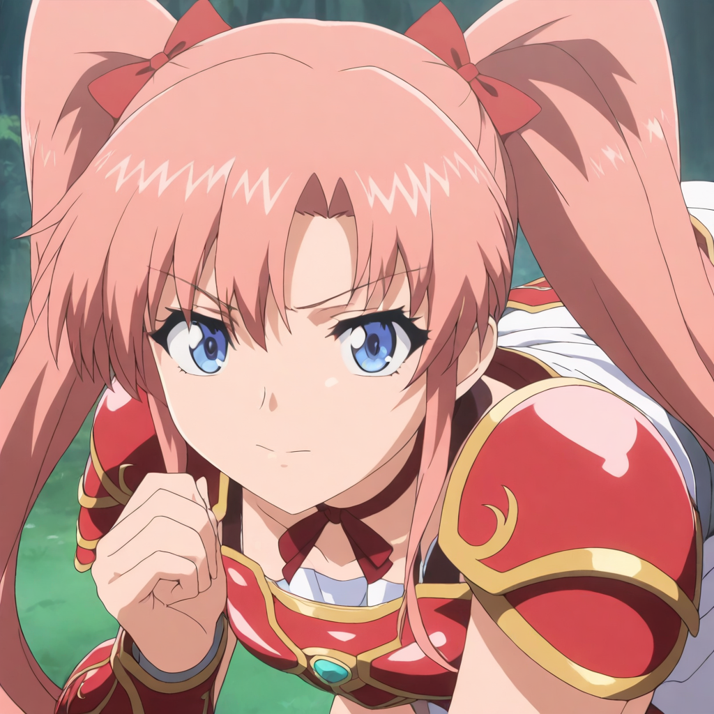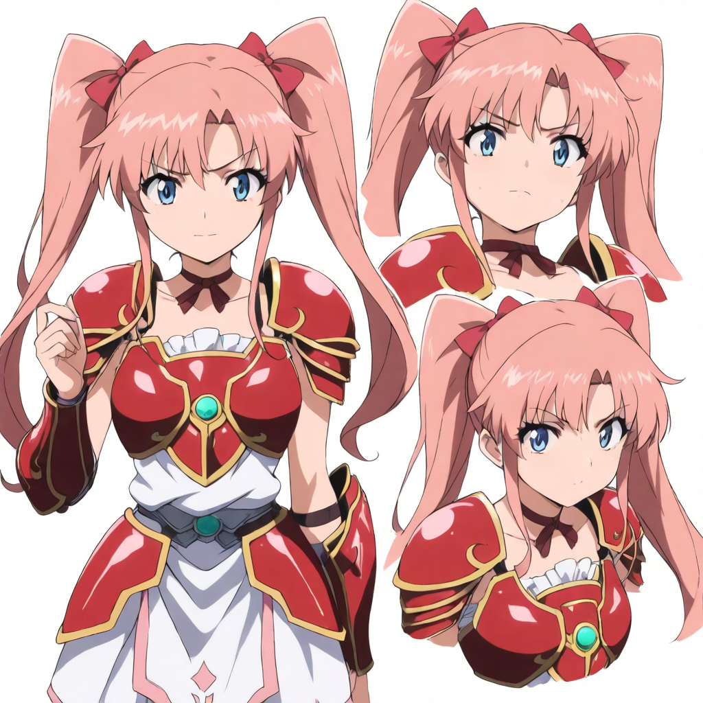 skuldss, pink hair, twintails, hair bow, blue eyes