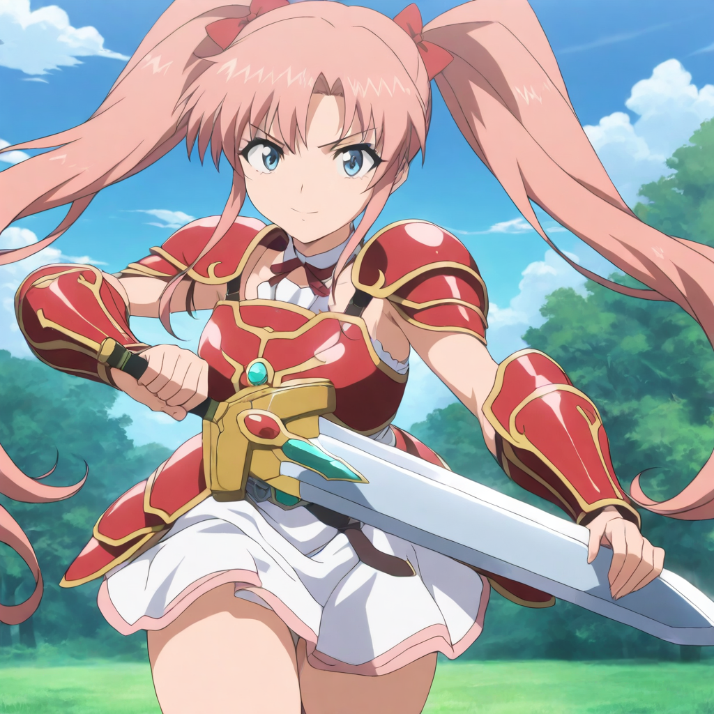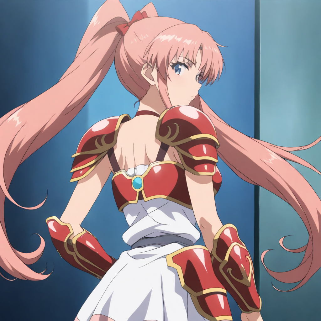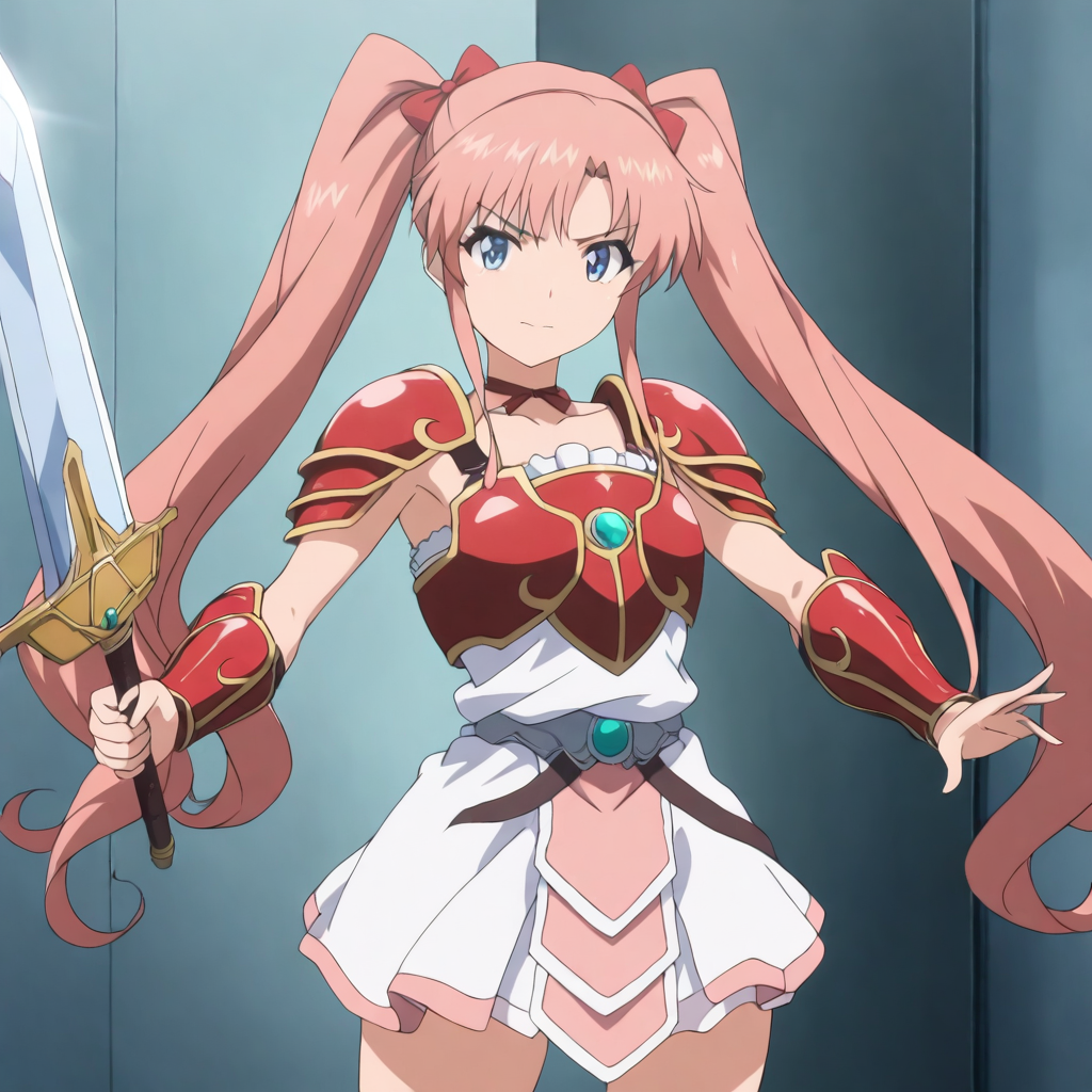 skuldss, pink hair, twintails, hair bow, blue eyes