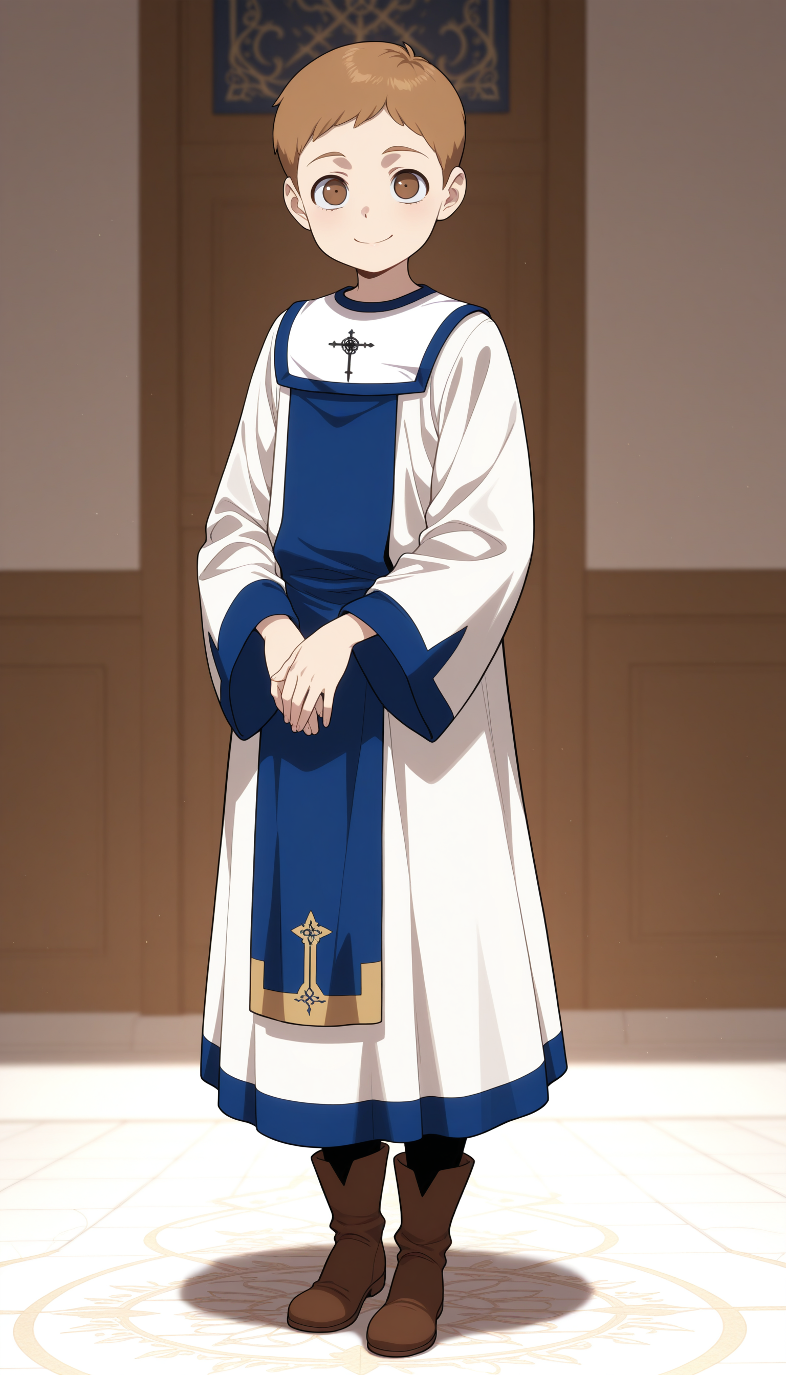 jean, 1boy, brown eyes, brown hair, short hair, robe, tabard