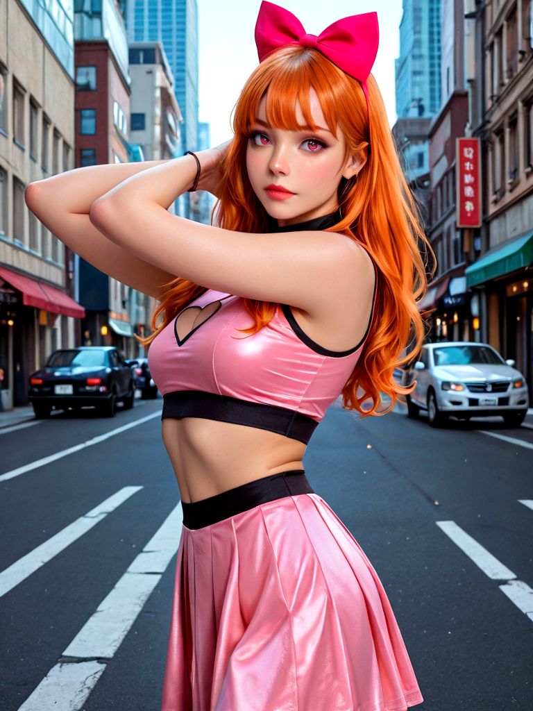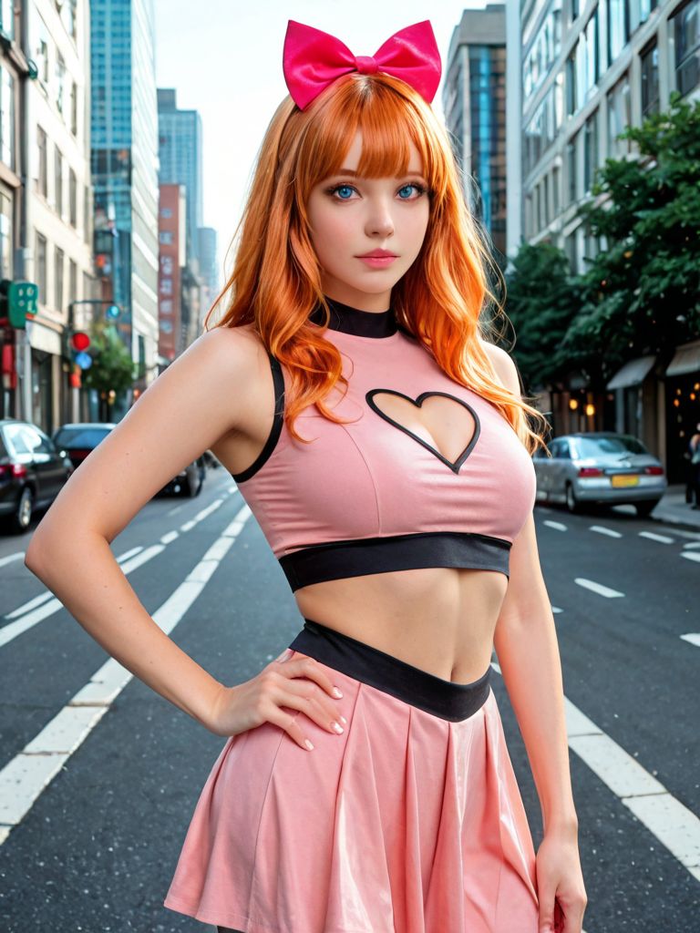 pink shirt, pink skirt, pink hair bow,