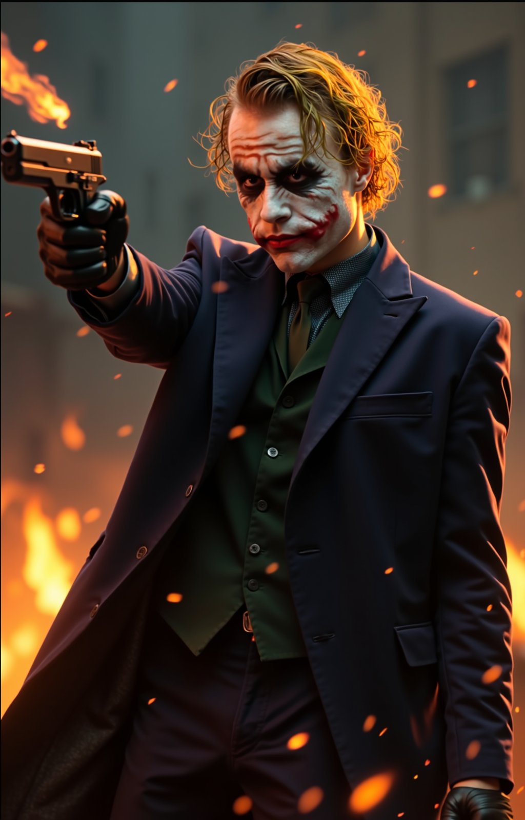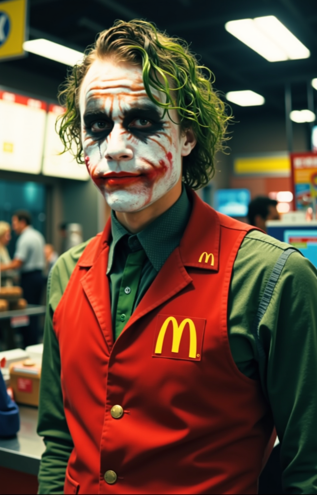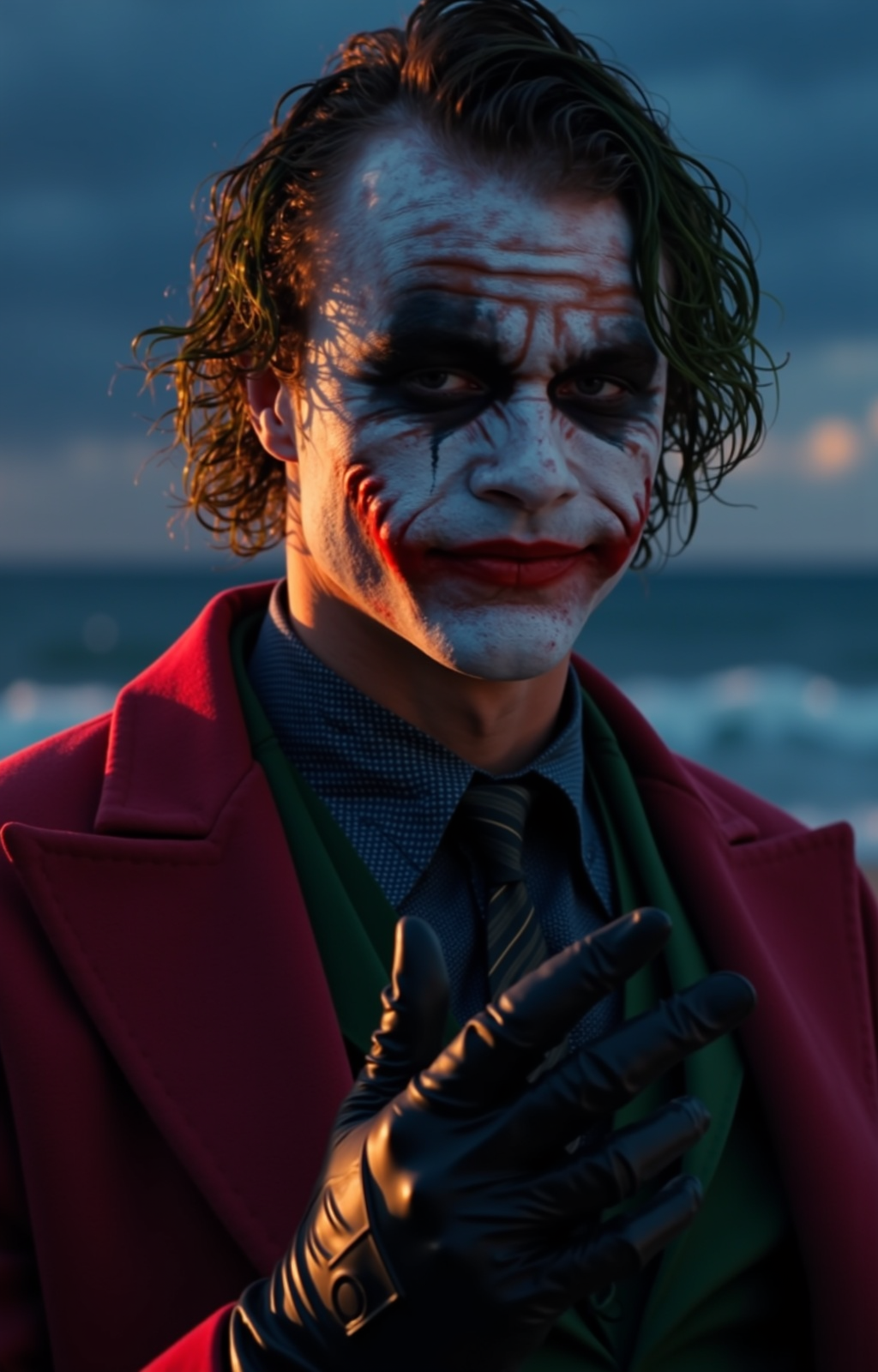 trigger:realistic, short hair, fluxjoker, male focus, solo, green hair, looking at viewer,