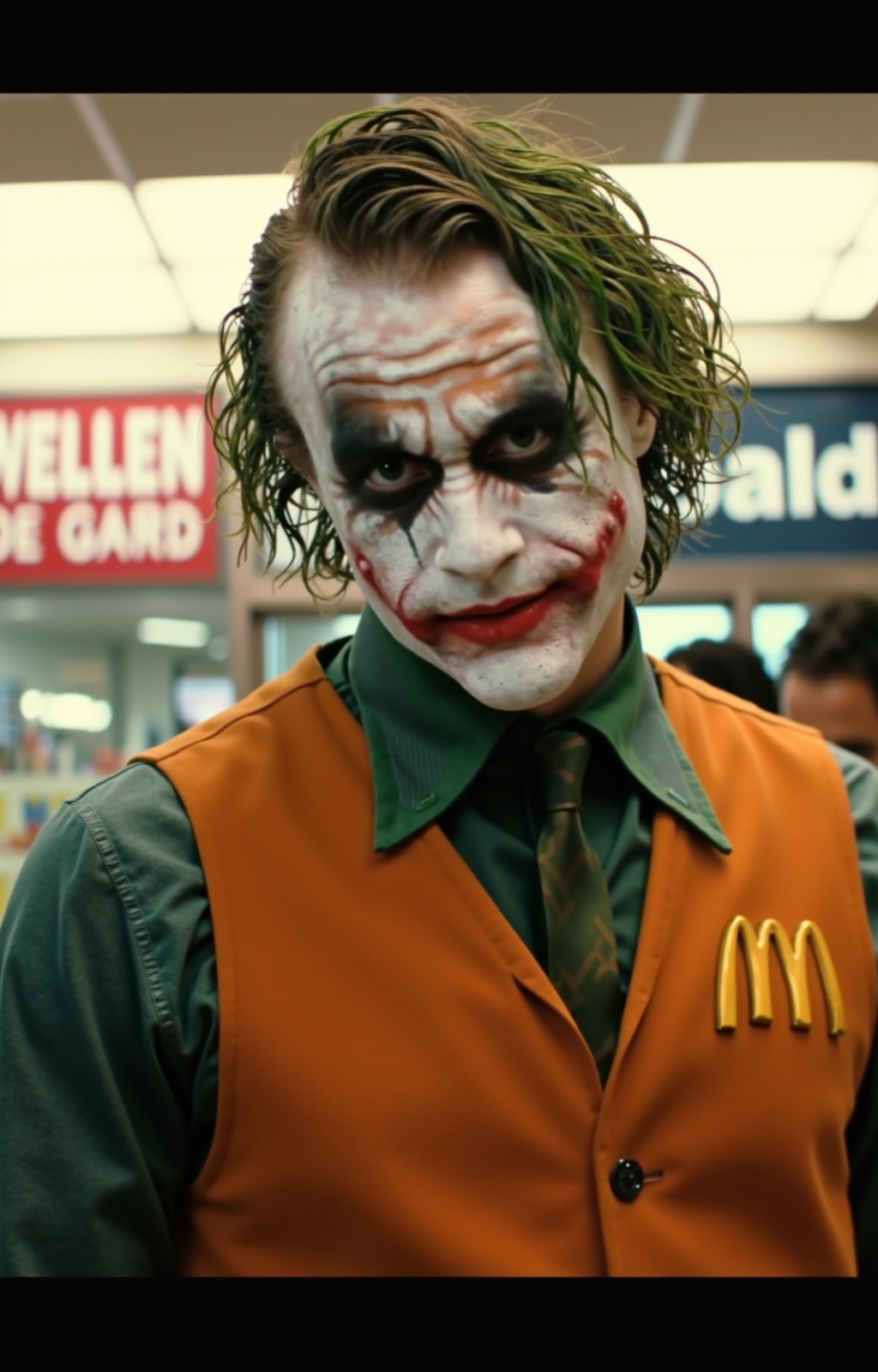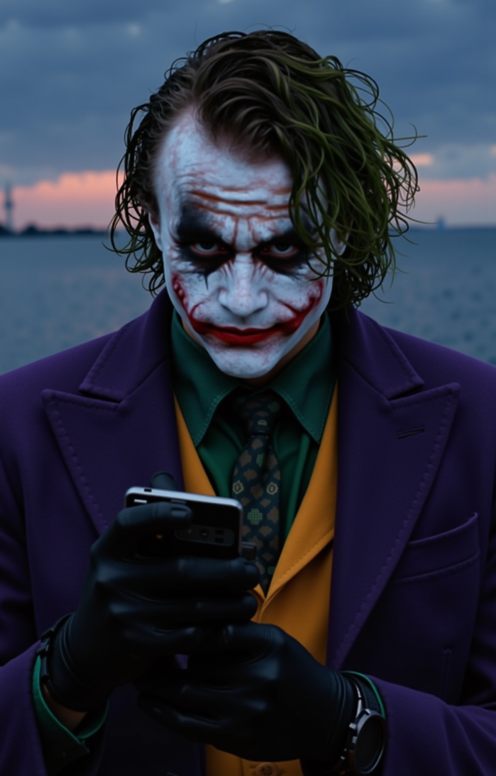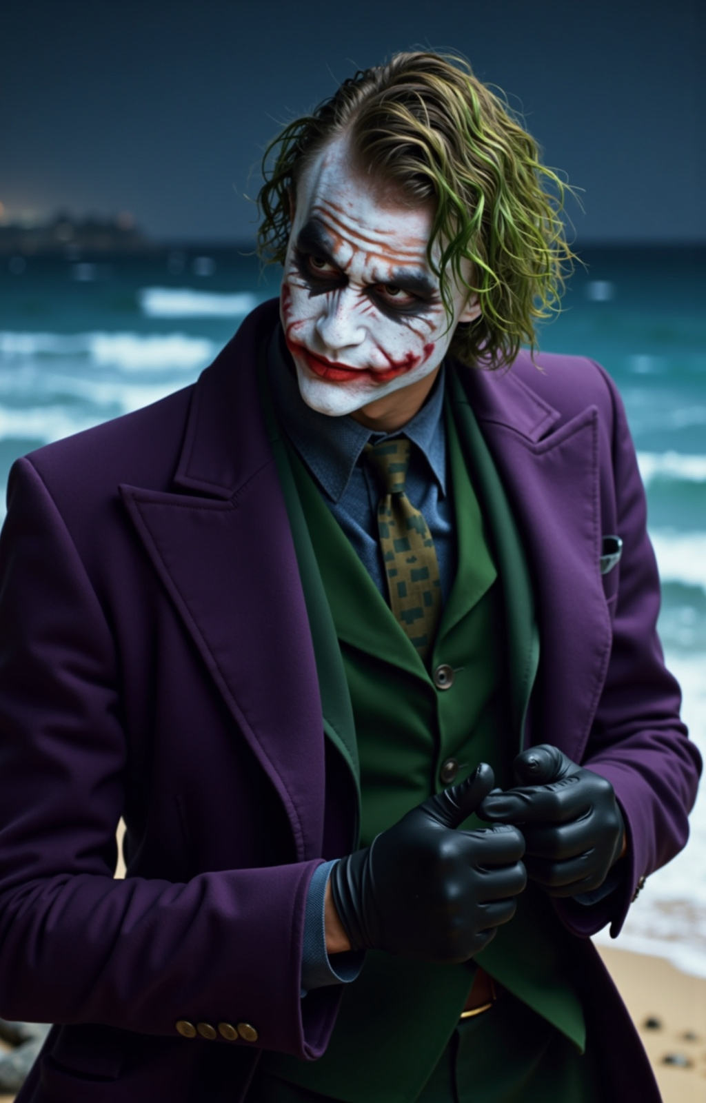 trigger:realistic, short hair, fluxjoker, male focus, solo, green hair, looking at viewer,