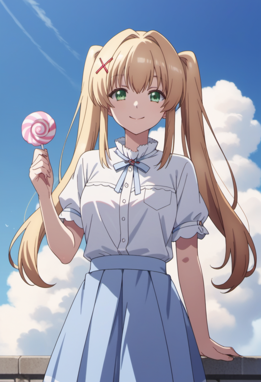 Trigger Words: tsumugi wenders, long hair, blonde hair, green eyes, twintails