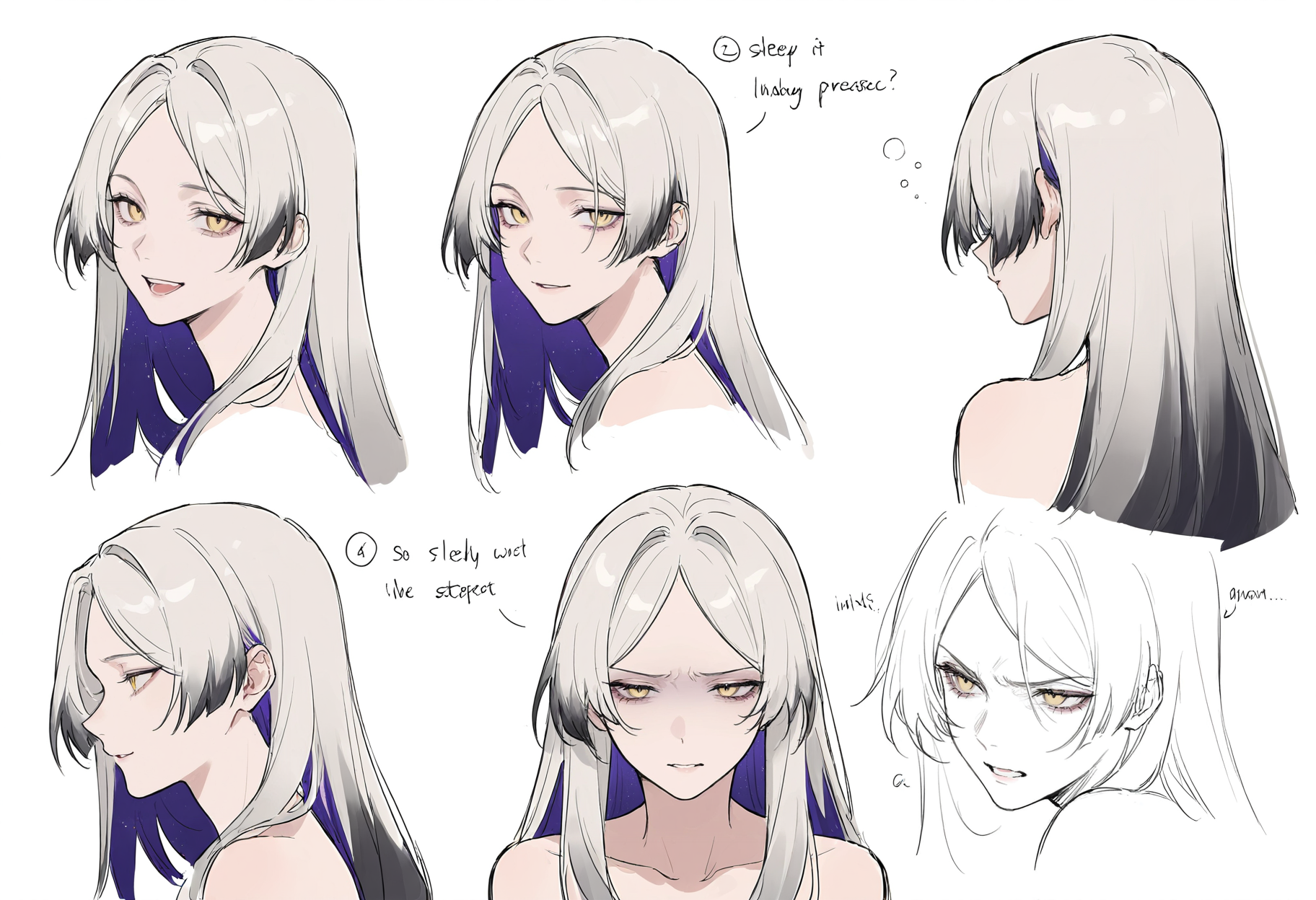 THS_1,1girl,grey hair,white hair,multicolored hair,long hair,very long hair,bangs,parted bangs,yellow eyes