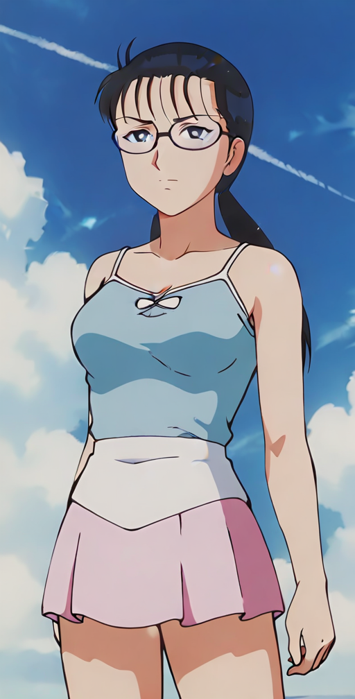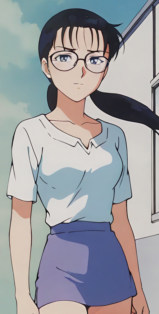 anime screencap,anime coloring <lora:Kiryu Harumi - Kindaichi Sonen no Jikenbo v2:0.8>Kiryu Harumi , retro artstyle, 1990s \(style\). Kindaichi Sonen no Jikenbo, 1girl, solo, long hair, black hair, twintails, black eyes,
