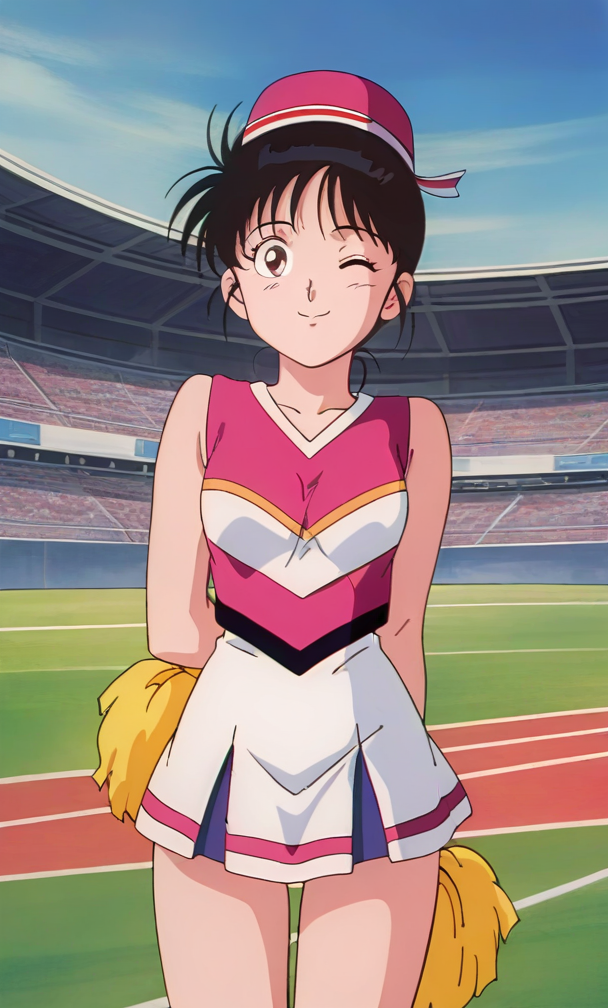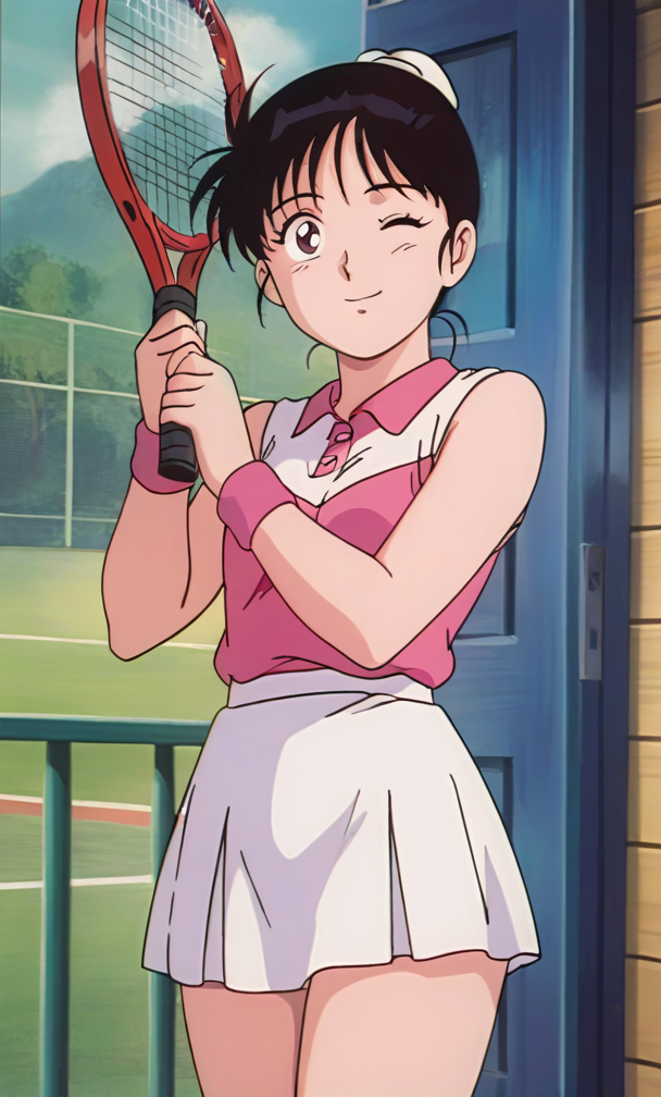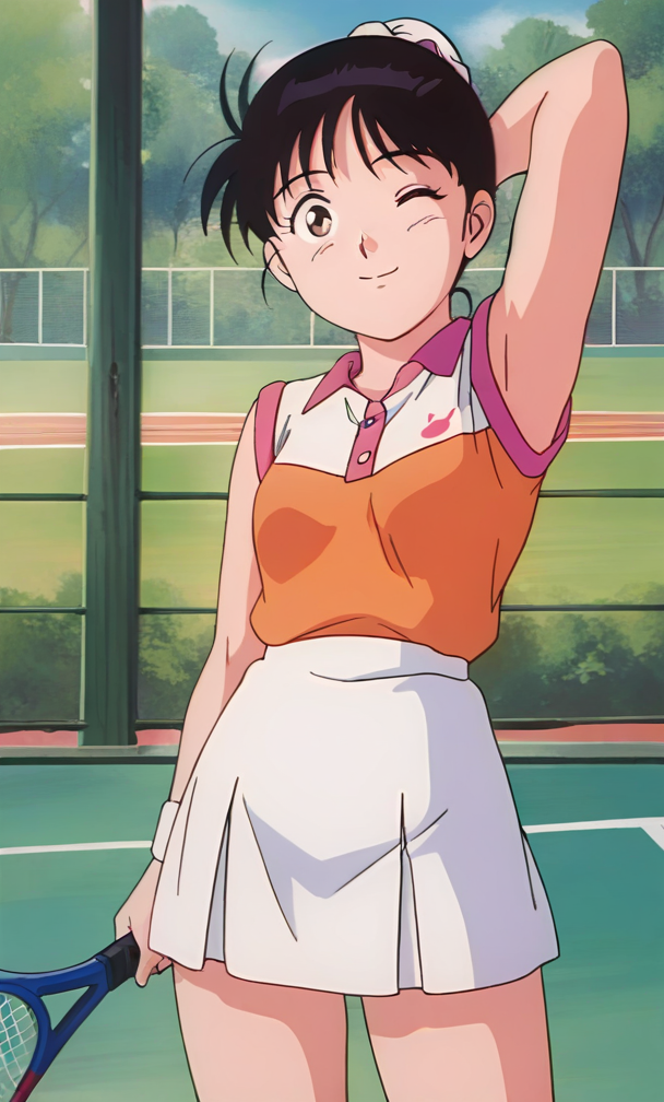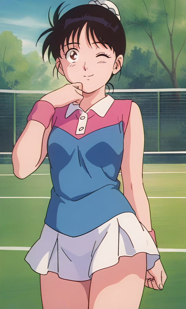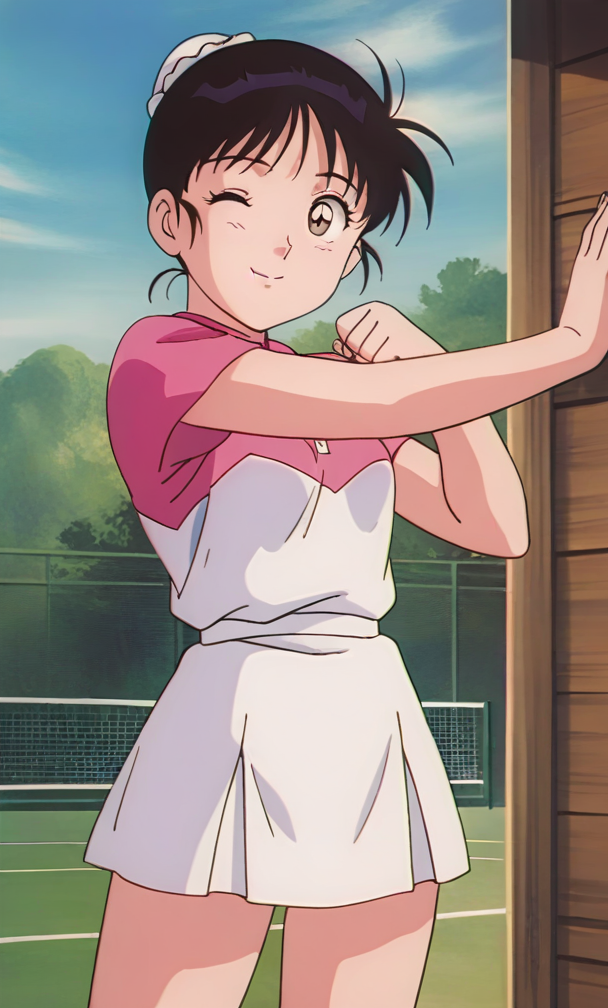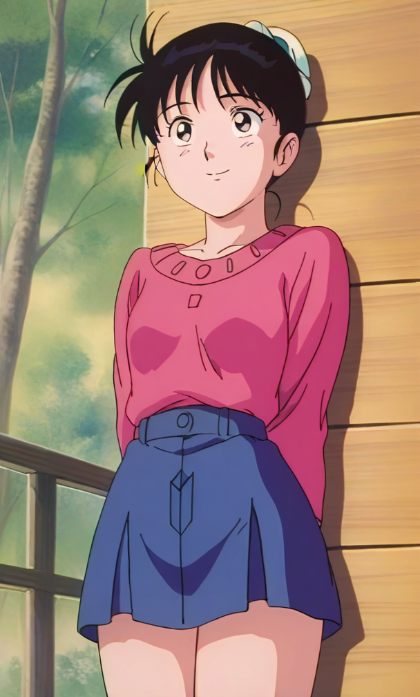 ,anime screencap ,anime coloring<lora:Kawanishi Sayuri - Kindaichi Sonen no Jikenbo v2:0.8>retro artstyle, 1990s \(style\), 1girl, short hair, black hair, hair meme,small breasts