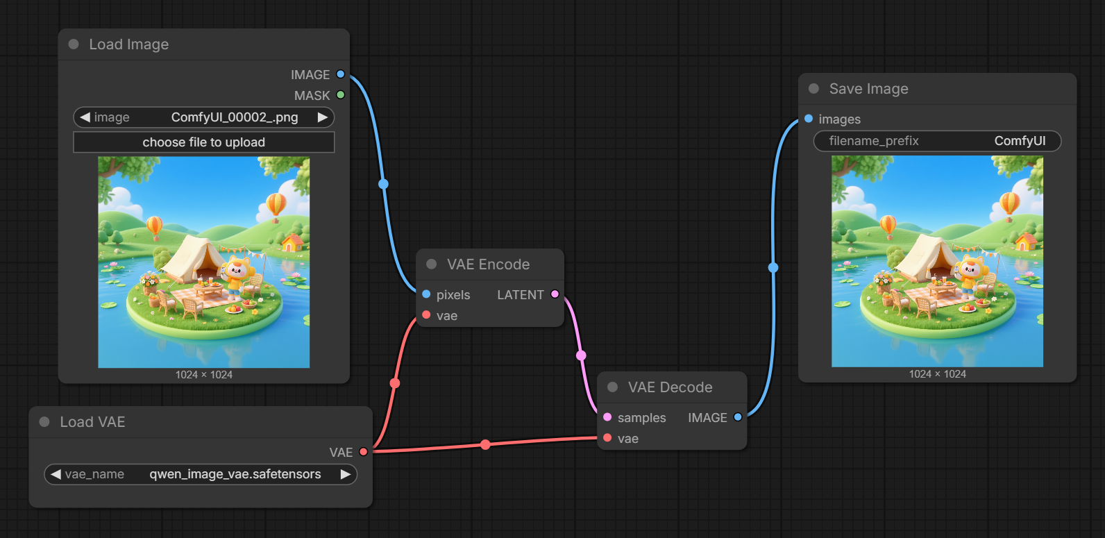 The LoRA was trained on a selection of 1024x1024 photos before and after being encoded and decoded with the Qwen-Image VAE with no changes made to the latent as illustrated in this workflow: