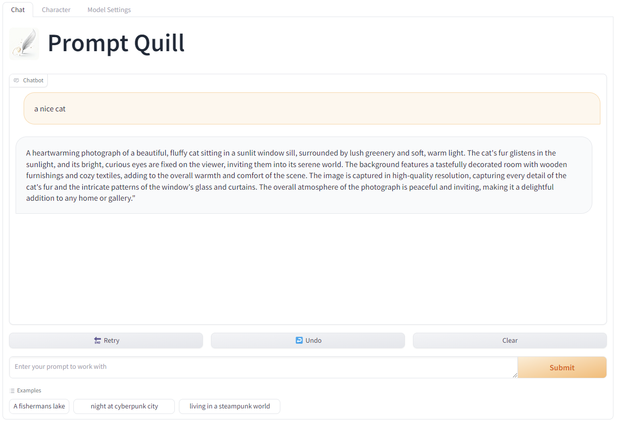 It is called Prompt Quill and it will help you make nice prompts more easy. Its not just a dull Prompt helper you might know, it is the world's first RAG workflow feeded with more than 4.9 Million Prompts I did take from Civitai and other sources with their permission.