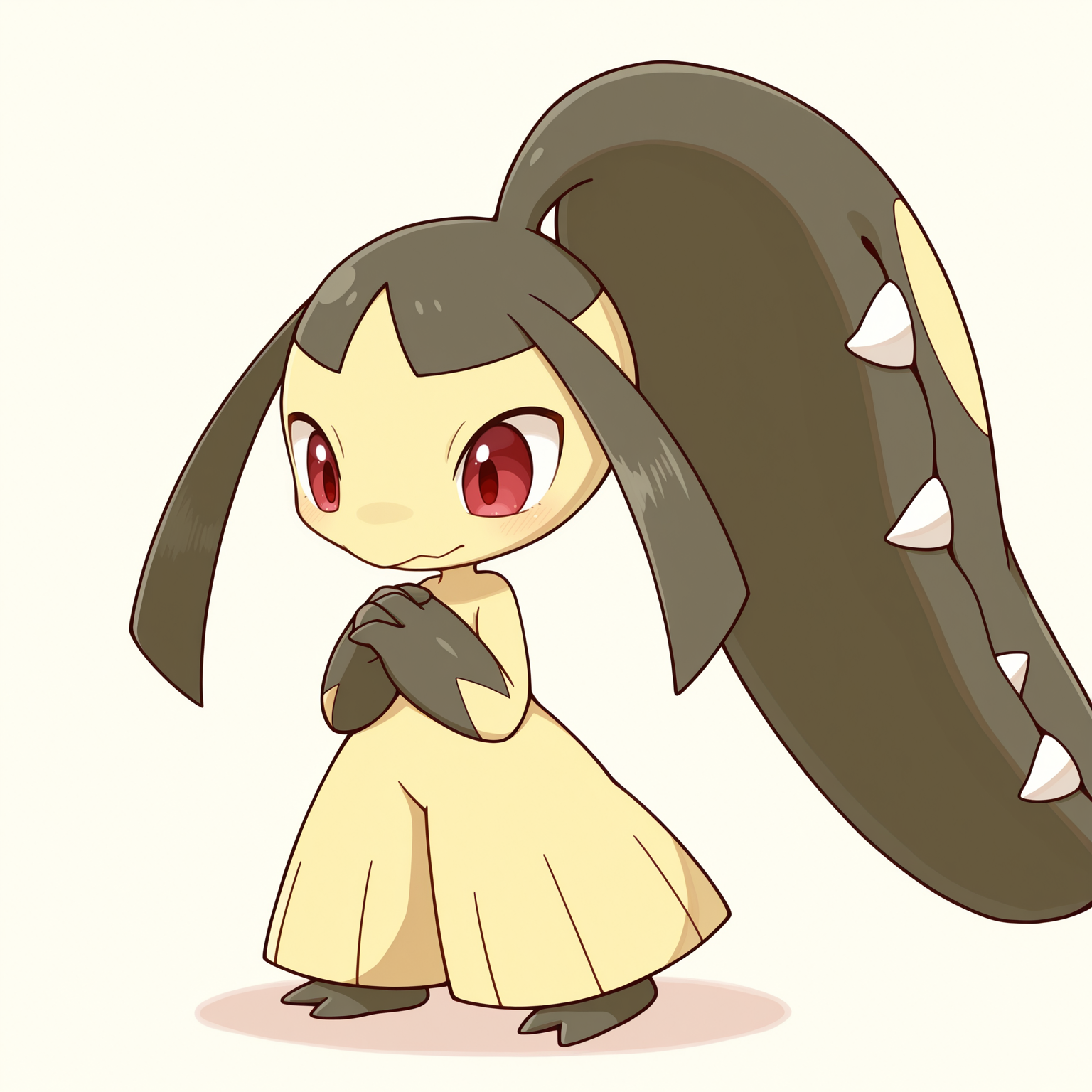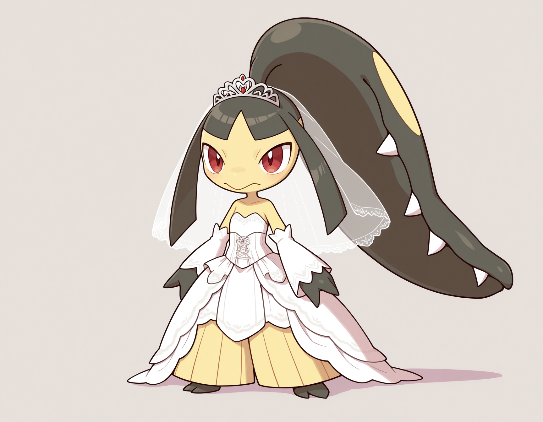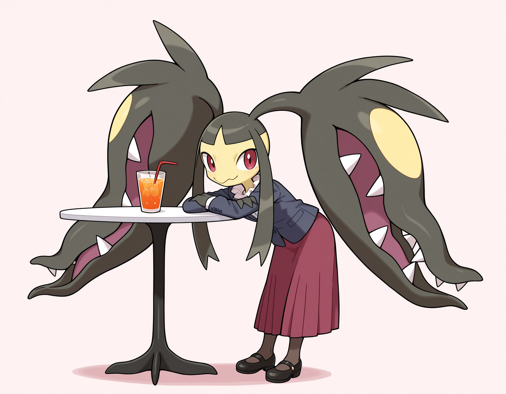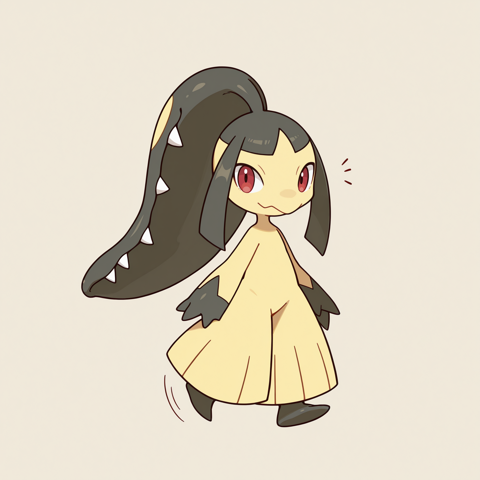 Mawile Tags: mawile, ponytail, long sidelocks, yellow skin, black hair, blunt bangs, pokemon \(creature\), red eyes, extra mouth