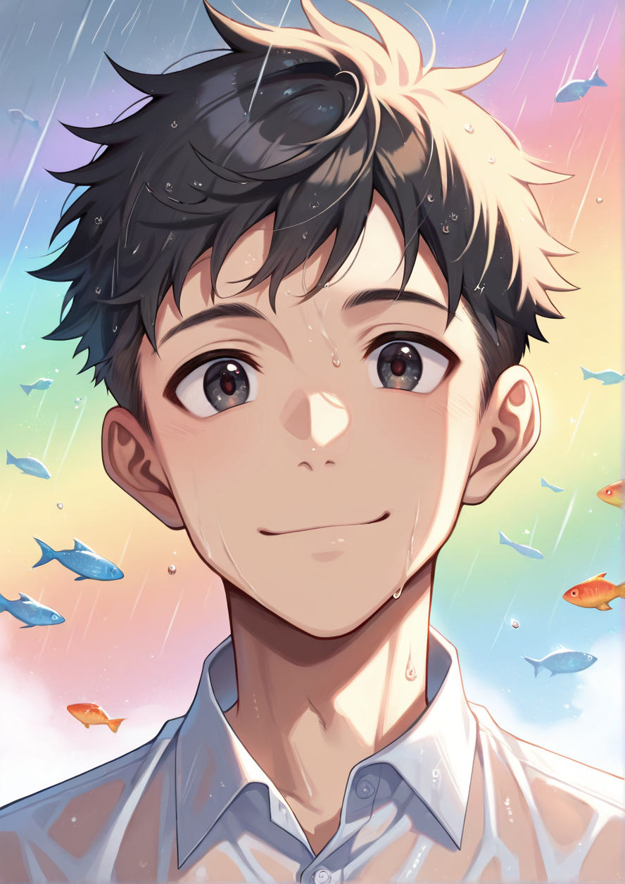 再度色味と塗り方を覚えさせました。髪の毛のハイライトが虹色になります。コントラストも下がりました。