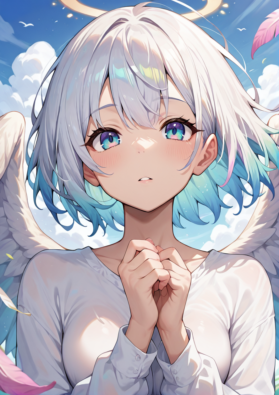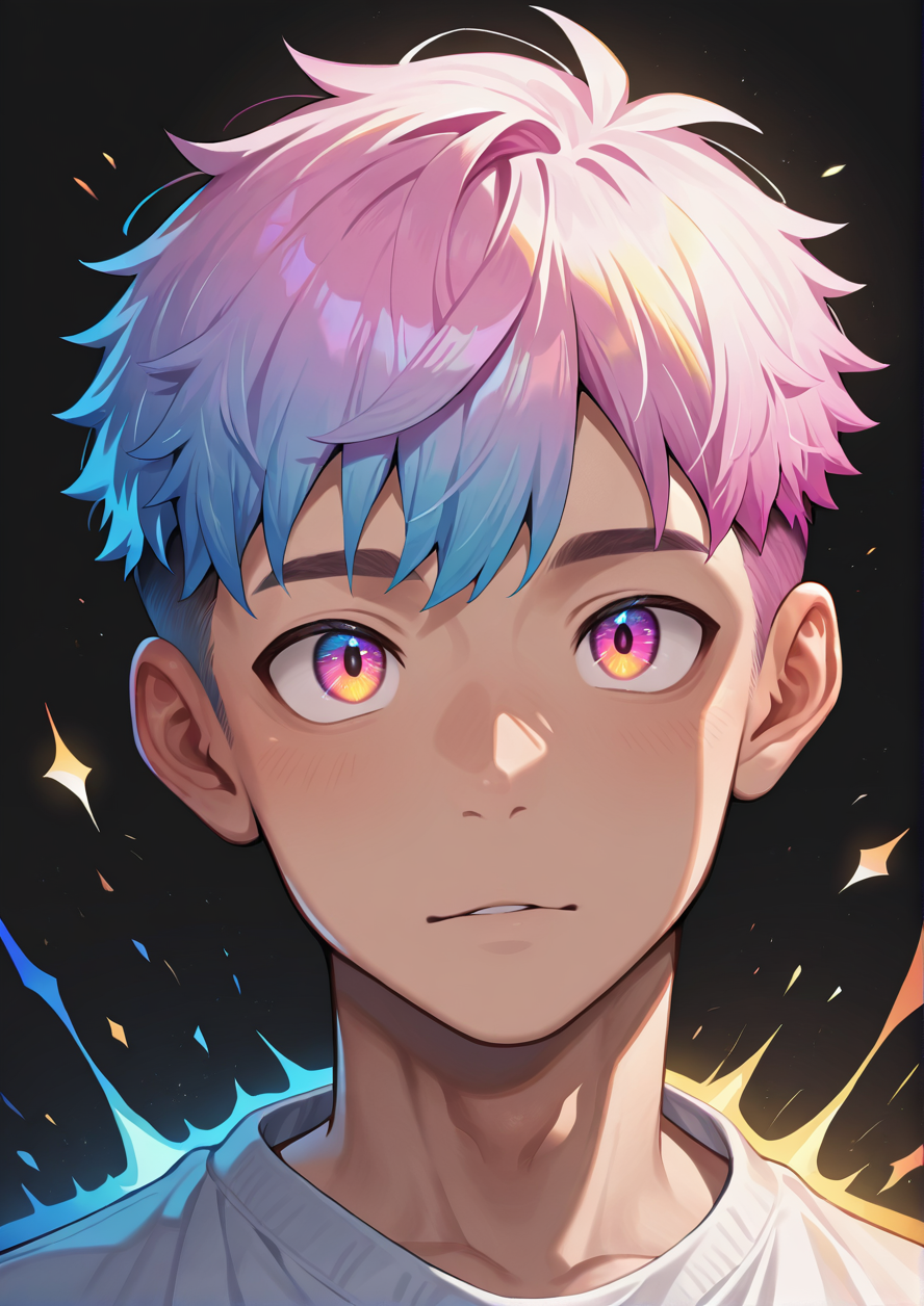 再度色味と塗り方を覚えさせました。髪の毛のハイライトが虹色になります。コントラストも下がりました。