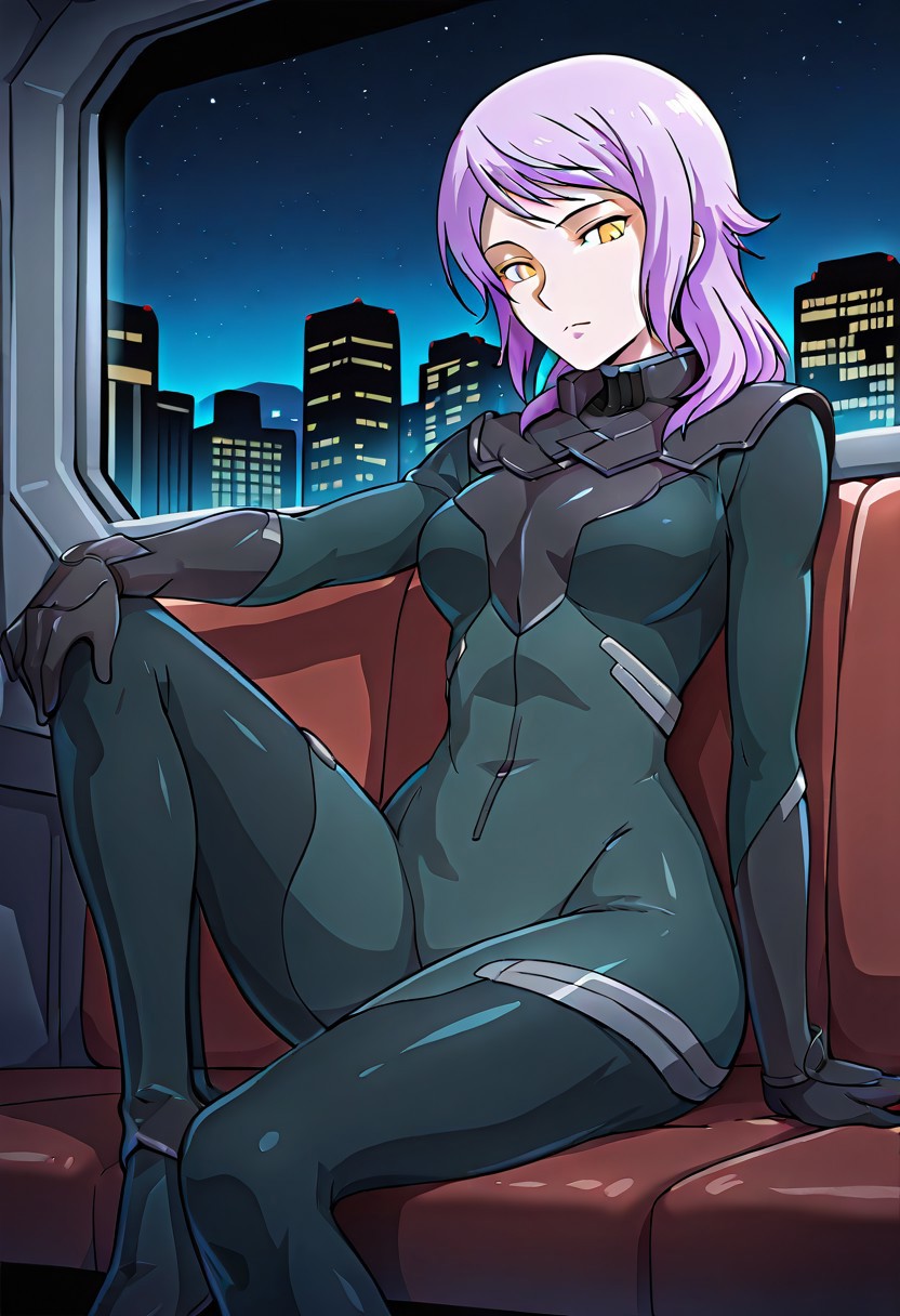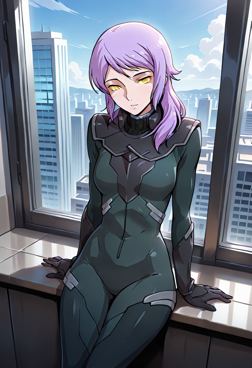 anew,1 female, purple hair, yellow shining eyes/red eyes