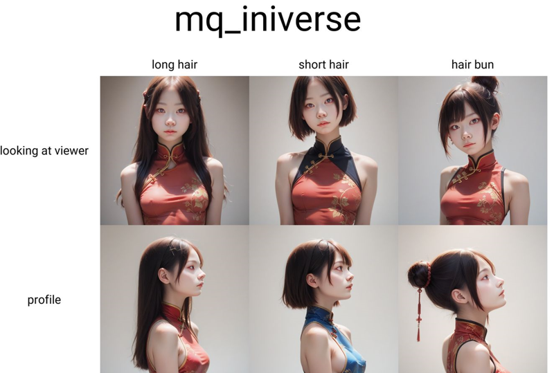 Prompt: score_9, score_8_up, score_7_up, score_6_up,score_anime,1girl,medium breasts, china dress, <lora:mq_pony_64_64:1> , zPDXL2,mq,close-up,detailed face,upper body, sfw,looking at viewer, long hair
