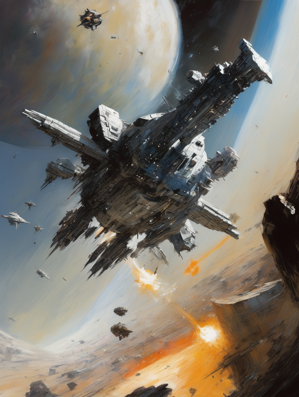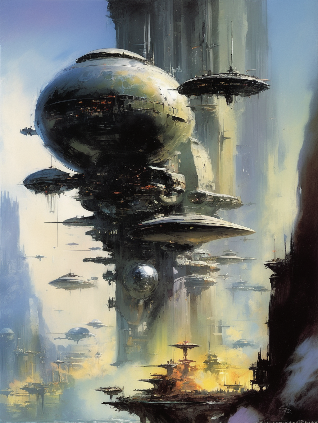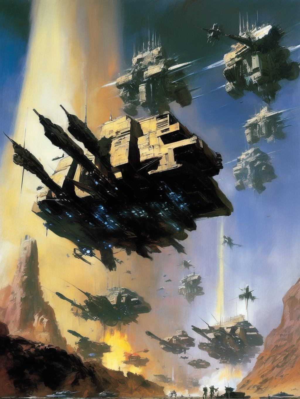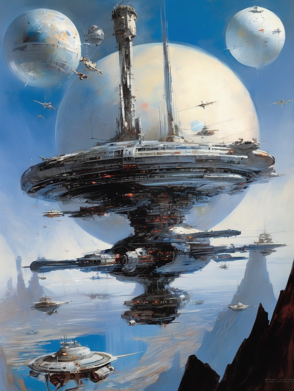 Berkey had a unique ability to create a sense of scale and depth in his paintings. He often portrayed colossal spaceships, celestial bodies, and vast expanses of space, creating a feeling of awe and the vastness of the cosmos.