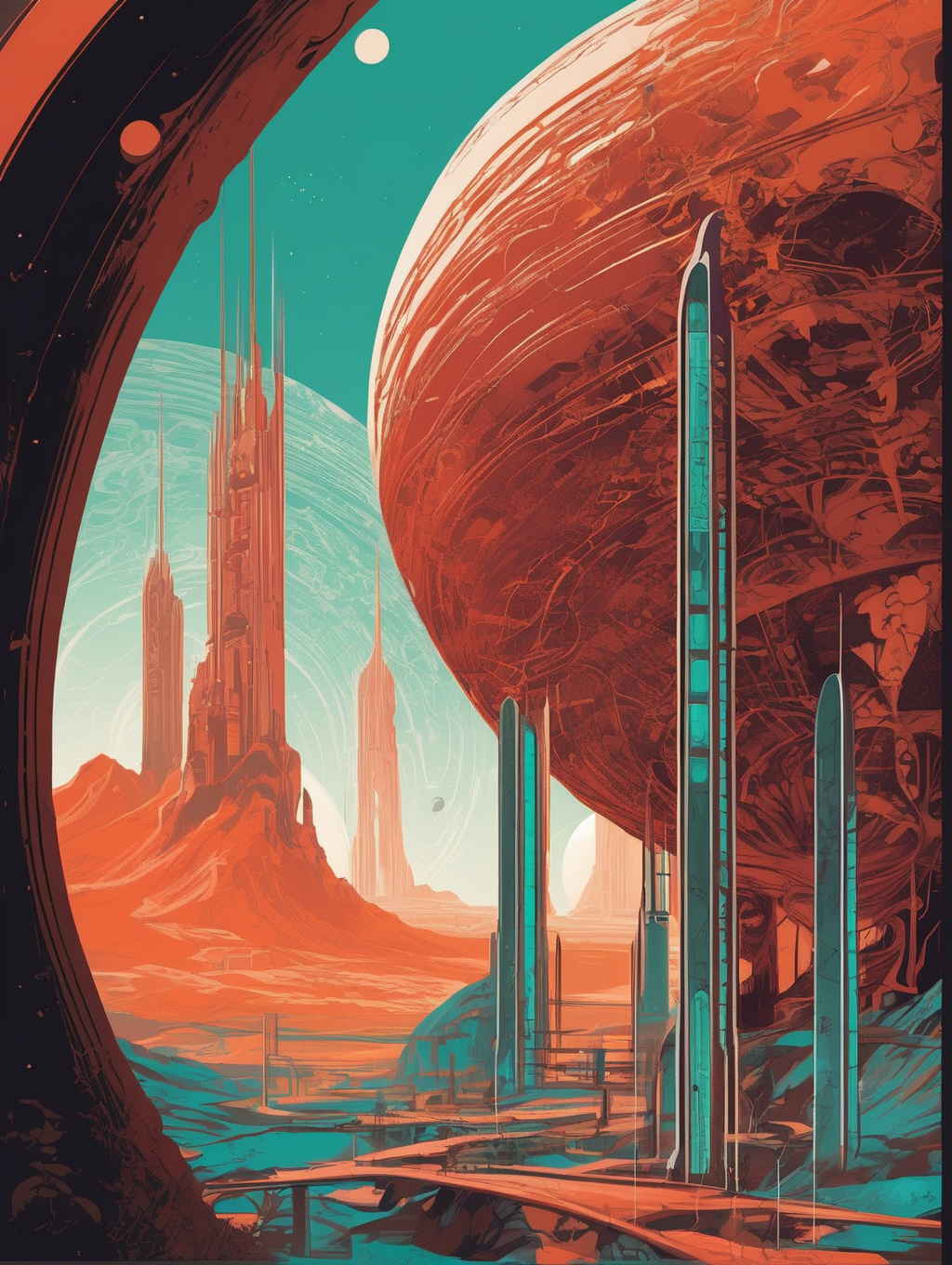 His style can be described as futuristic, surreal, and intricately detailed. Eng creates imaginative and otherworldly landscapes, often featuring futuristic cityscapes, alien environments, and cosmic scenes. His art is characterized by its meticulous attention to detail, rich color palettes, and a sense of awe-inspiring grandeur.