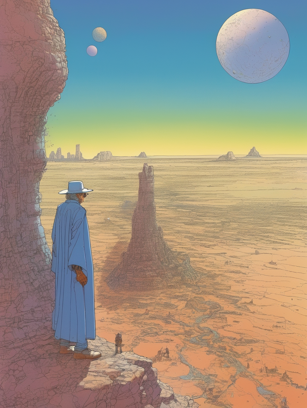 He was admired for his ability to blend science fiction and fantasy elements with philosophical themes, exploring the human condition and the boundaries of reality. Moebius' storytelling and visuals pushed the boundaries of the medium, captivating readers and influencing subsequent generations of artists and creators.