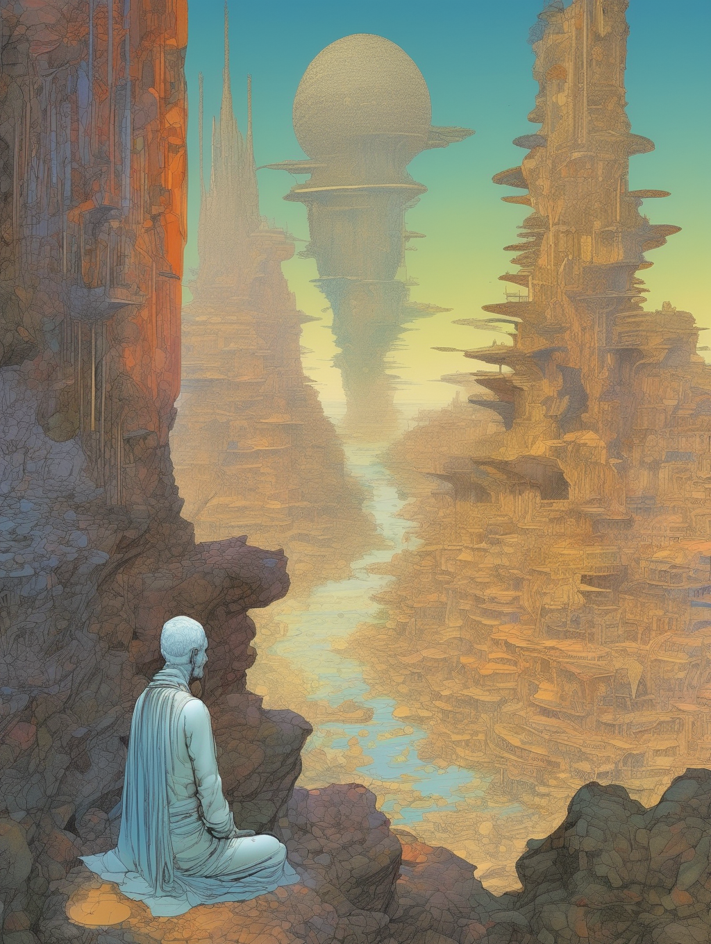 His style can be described as highly imaginative, surreal, and characterized by intricate details and organic forms. Moebius was celebrated for his ability to create immersive and visually stunning worlds, transporting readers into realms of imagination.