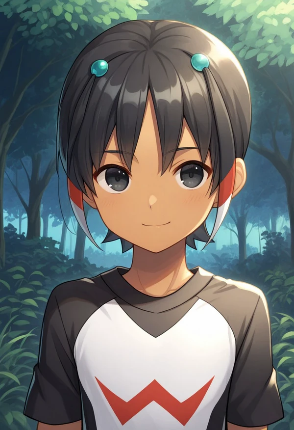 shuu, 1boy, black hair, hair ornament, black eyes, sportwear, soccer uniform, dark skin,