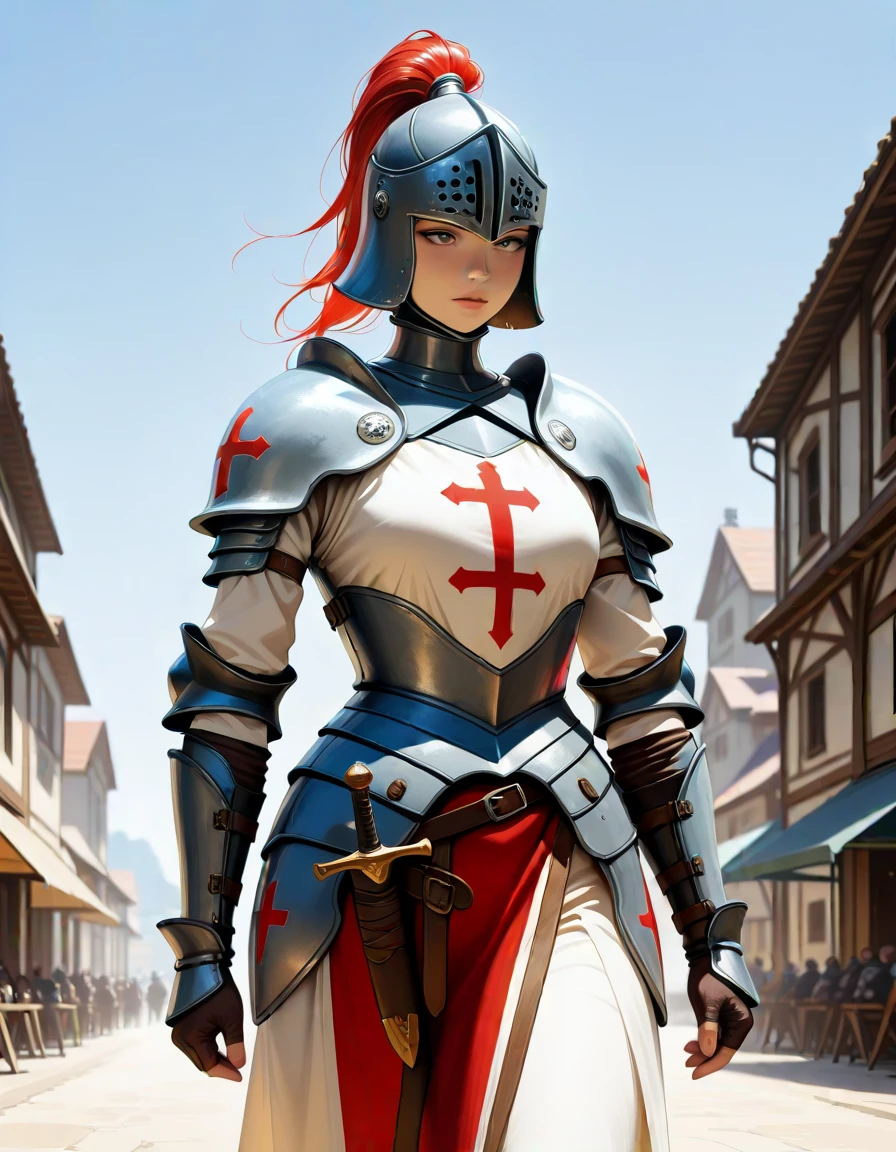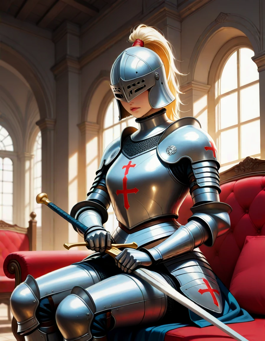a {standing| sitting | fighting stance, | riding_horse } knight, weapon, armor, holding, holding weapon, shoulder armor, gauntlets, pauldrons { buster sword, | long sword, | huge sword, | planted sword, | mornig_srar| polearm, |halberd, | battle axe, | rapier, } { cape|shield | capelet, | hood down, | scabbard, } __color__ eyes __color__ hair, __medieval_knight_combinations/*__ {indoors|outdoors} {warfield|church|desert|forest|brickwall| ruins | village, } { crusader | paladin, | knights of the round table | hussar | Polish hussars } __color__ theme