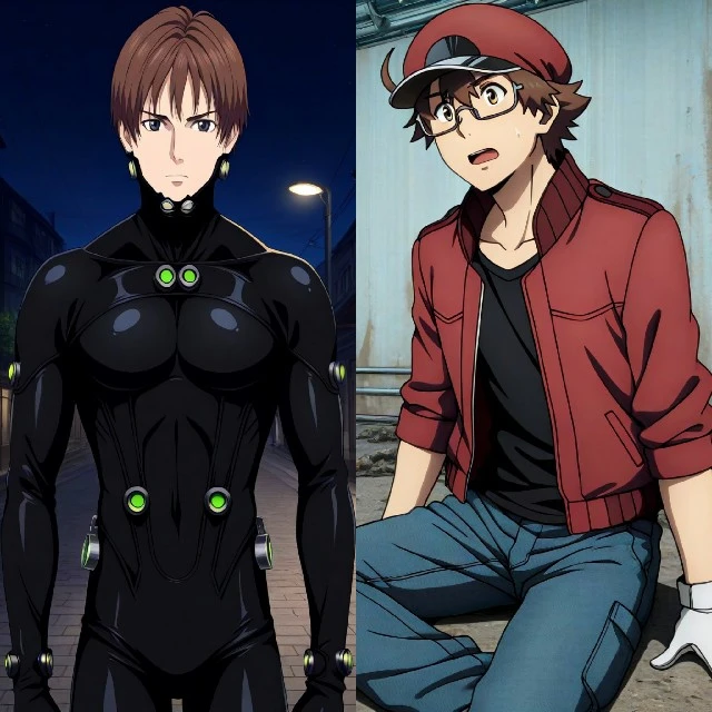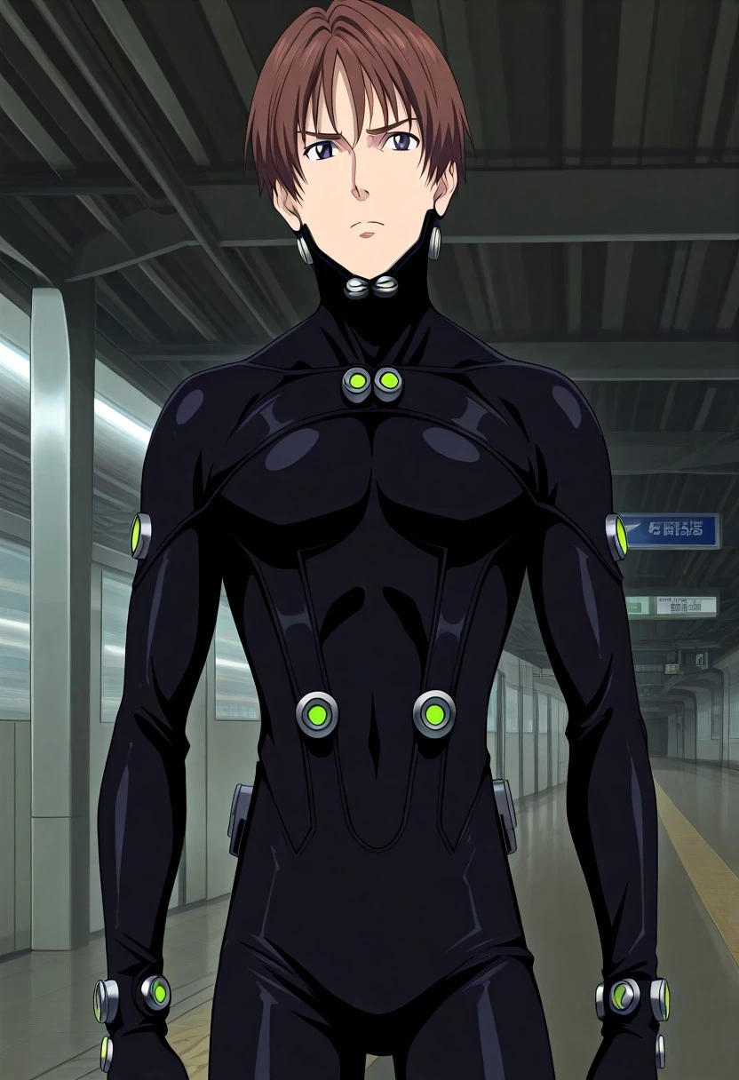 Kei Kurono, brown hair, gray-black eyes, Gantz bodysuit