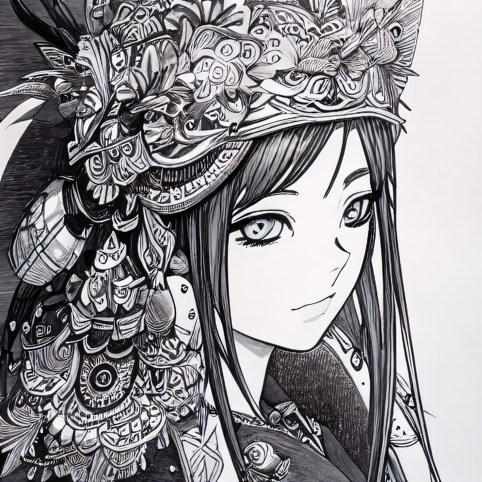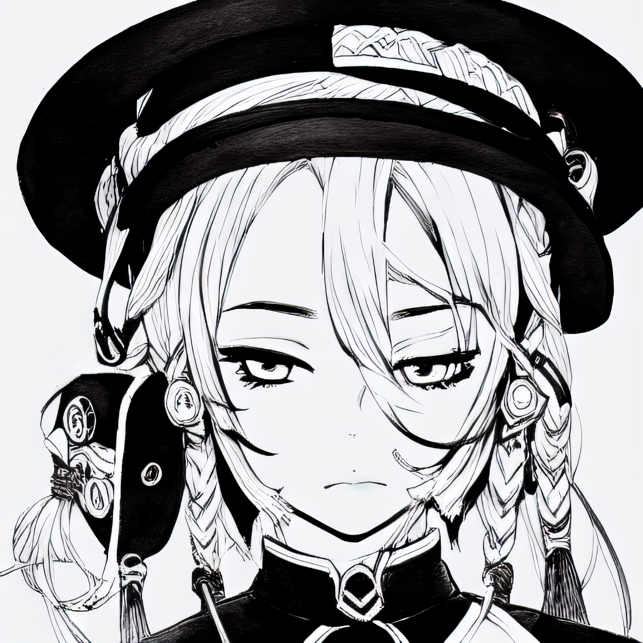 Example prompt: DBlinebrush style, masterpiece, 1girl, beautiful portrait of an anime female adventurer, monochrome