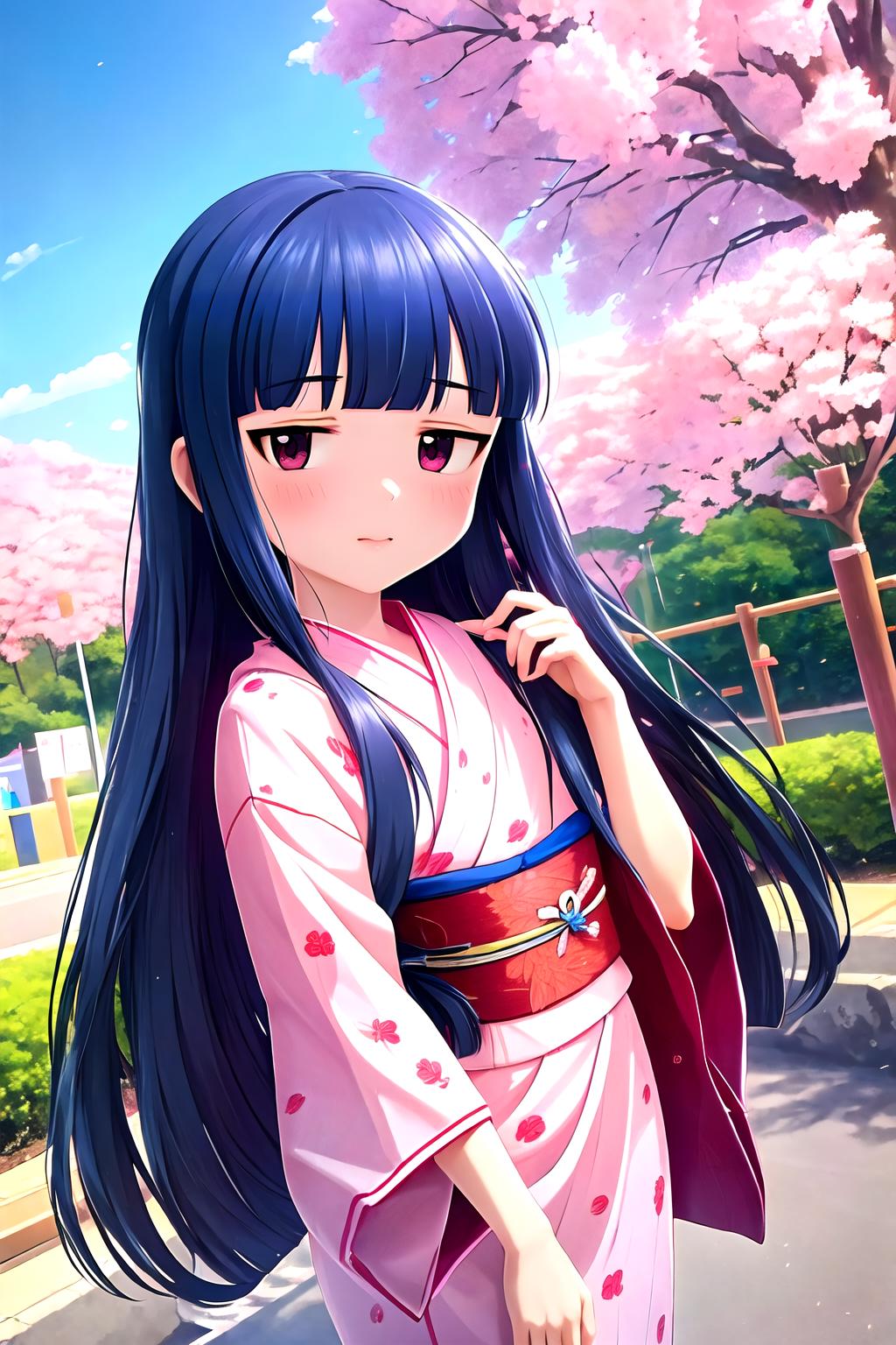 yukimi, 10 yo., long hair, blunt bangs, flat chest, expressionless, shy,