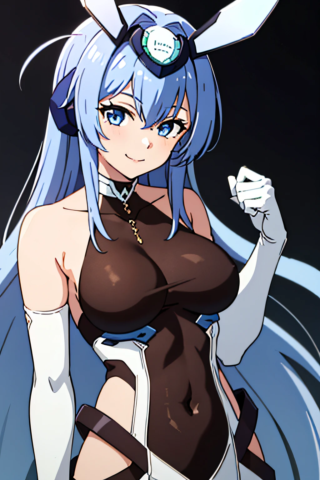 BBNJ, LONG HAIR, RABBIT EARS, LARGE BREASTS, PLAYBOY BUNNY, BODYSTOCKING, COVERED COLLARBONE, SEE-THROUGH, STRAPLESS, BARE SHOULDERS, BLACK LEOTARD, WRIST CUFFS, BLACK PANTYHOSE