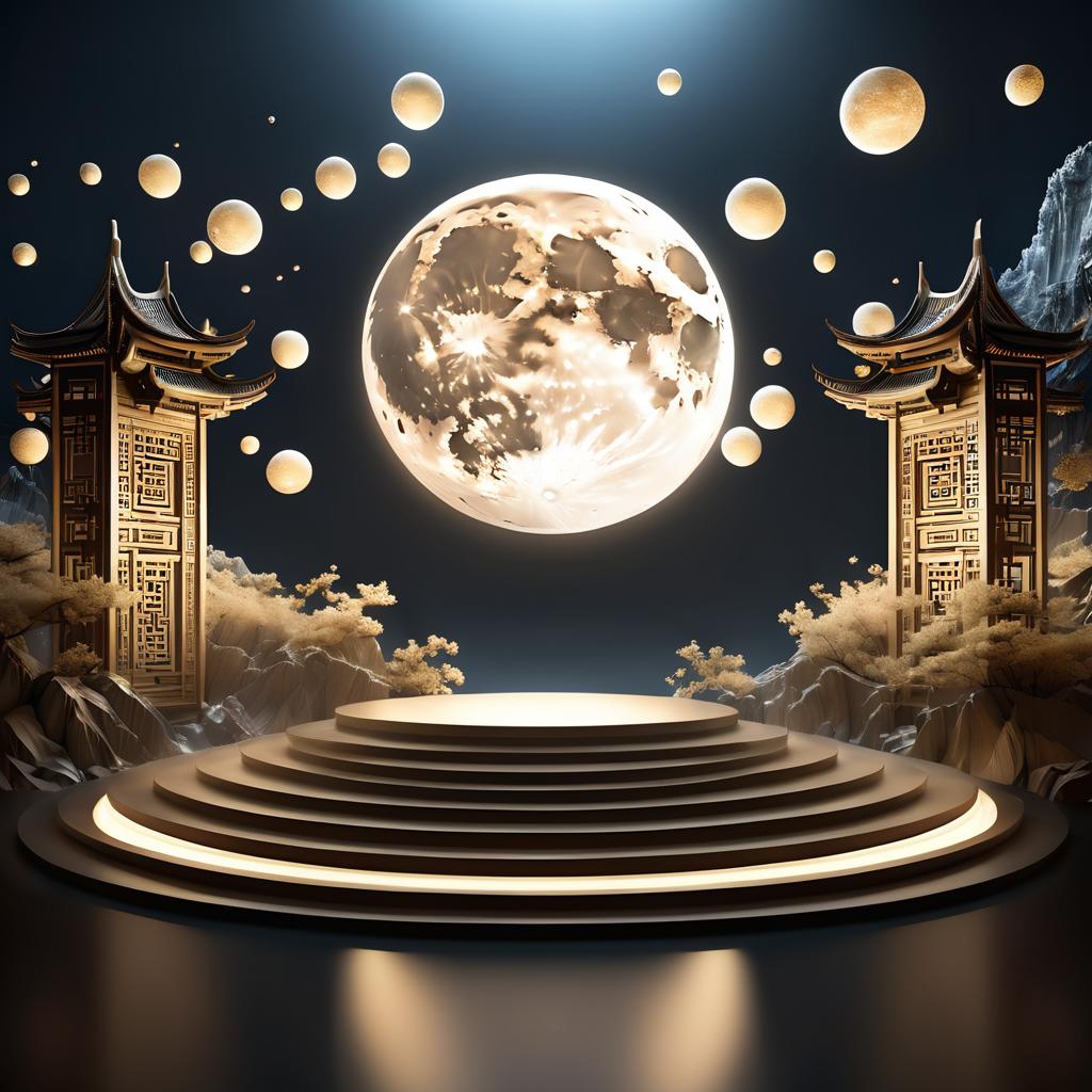 mid autumn theme,realistic,3d,c4d rendering,spotlight,shining,shadows,booth,<lora:booth:0.75>,