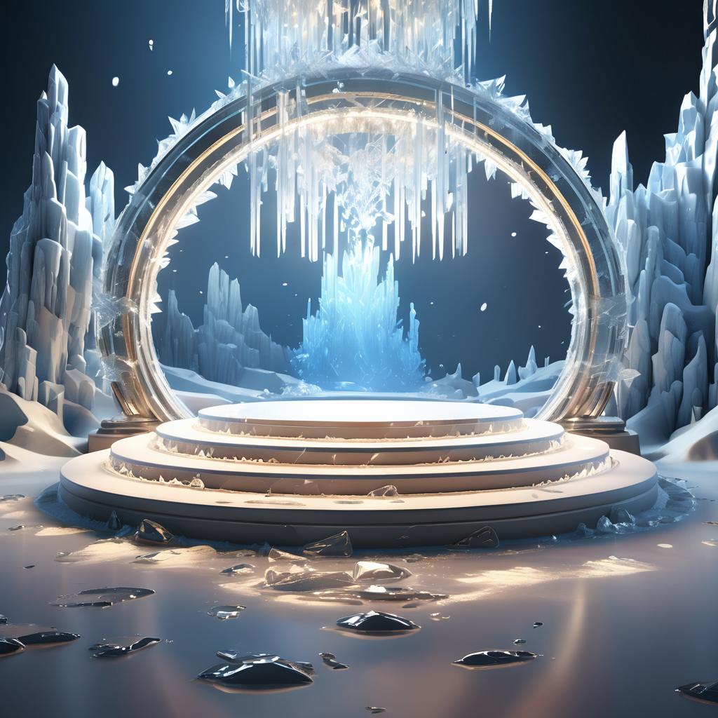 ice theme,realistic,3d,c4d rendering,spotlight,shining,shadows,booth,<lora:booth:0.75>,