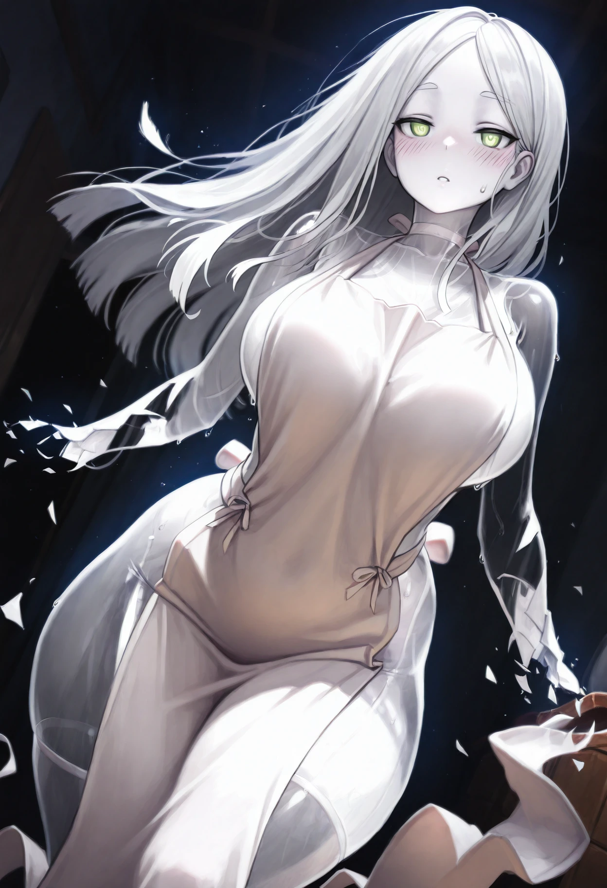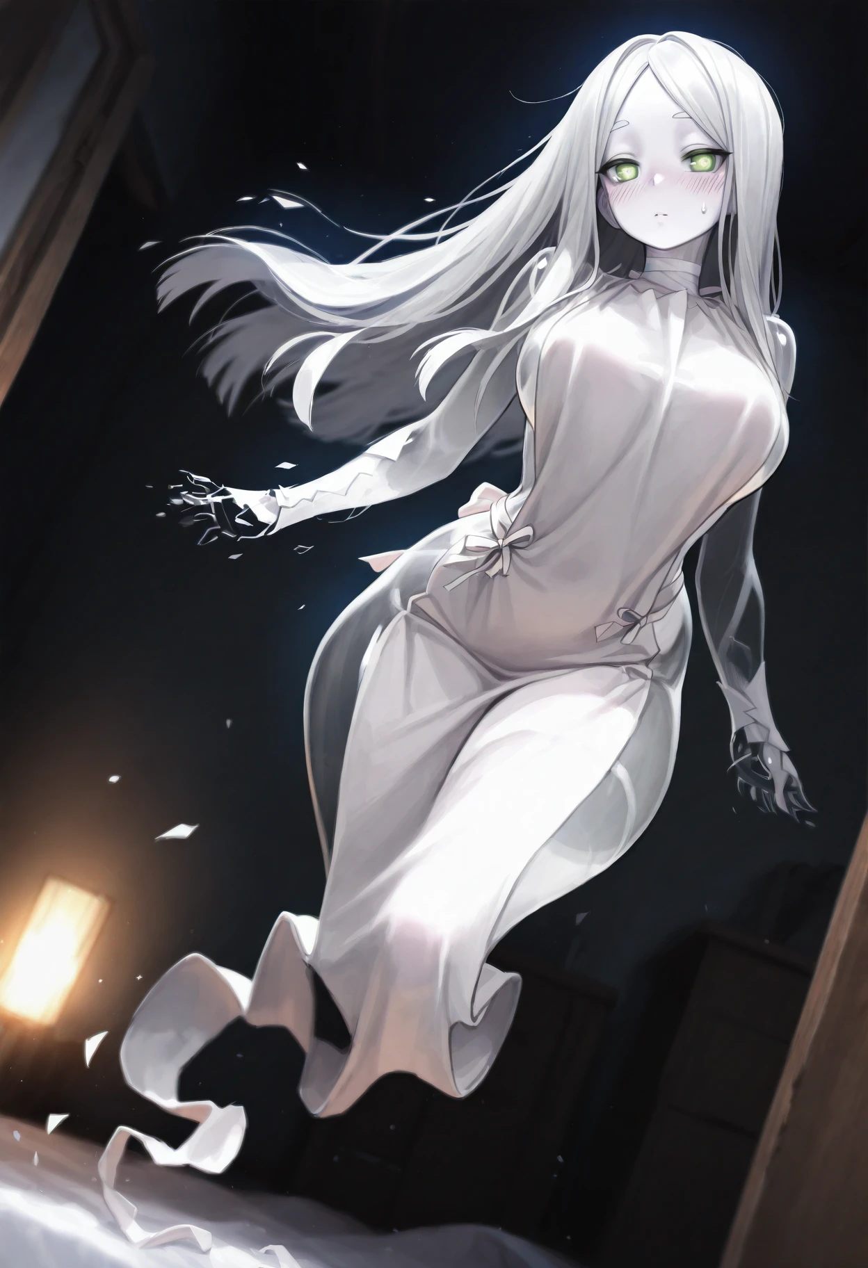 ittanmomenmge, ghost, ghost tail, white skin, colored skin, see-through, floating, no hands, windπ€ Character Appearance: