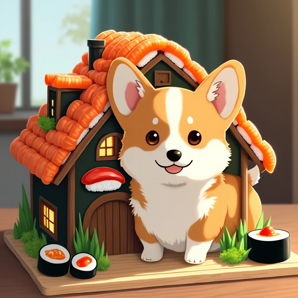 A cute corgi lives in a house made out of sushi, animeHow To Use