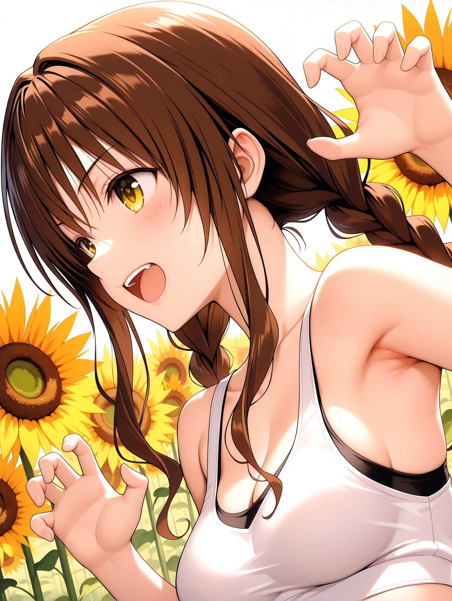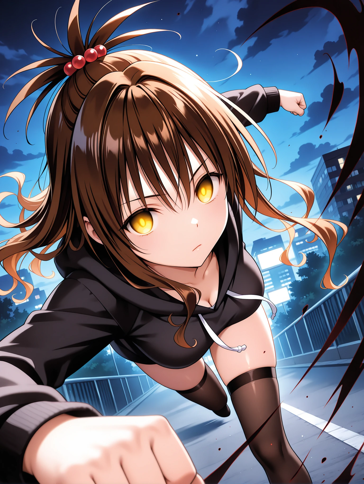 トリガーワード・y_mikan,brown hair,long hair,yellow eyes,hair ornament,hair bobbles,