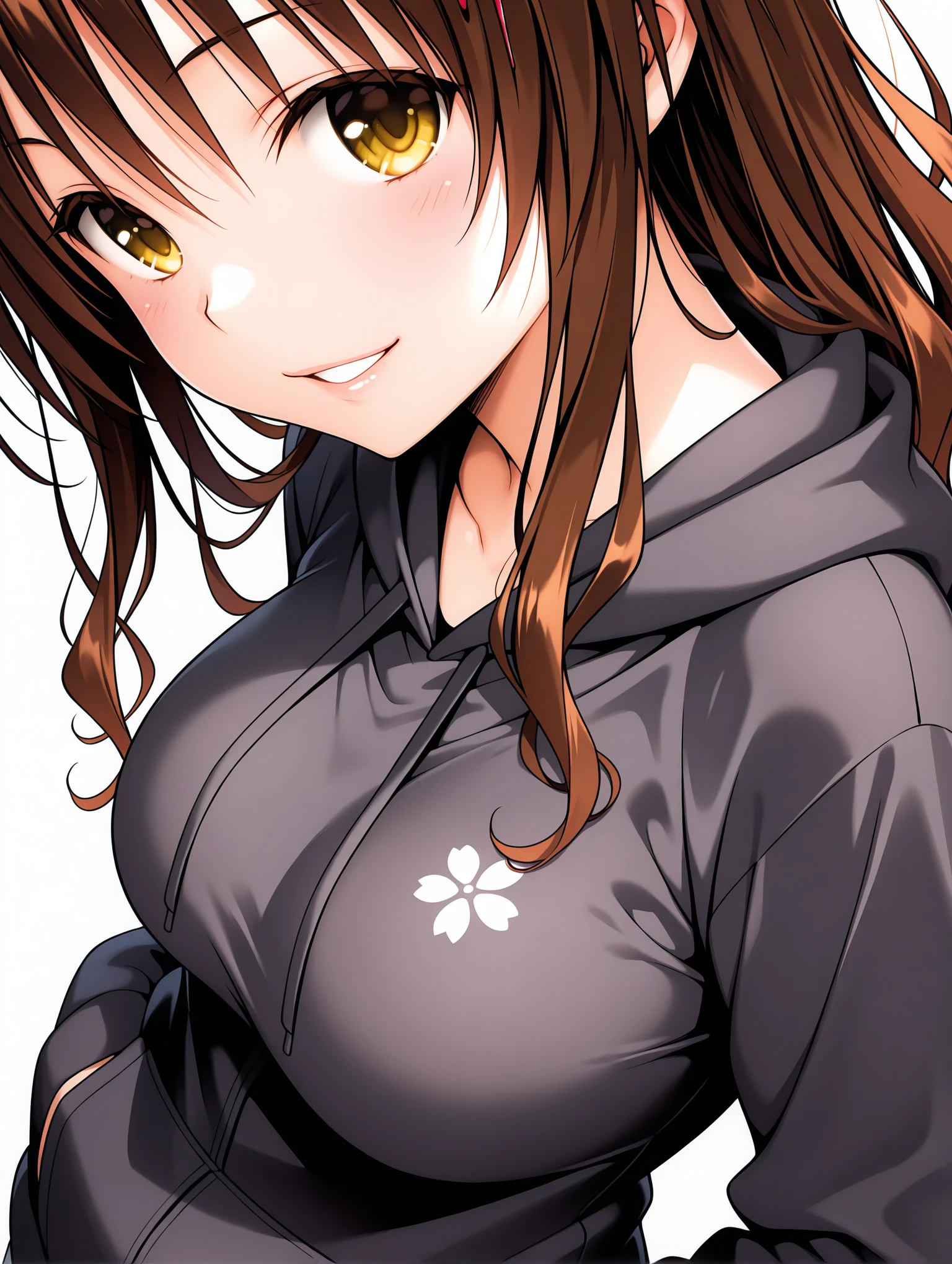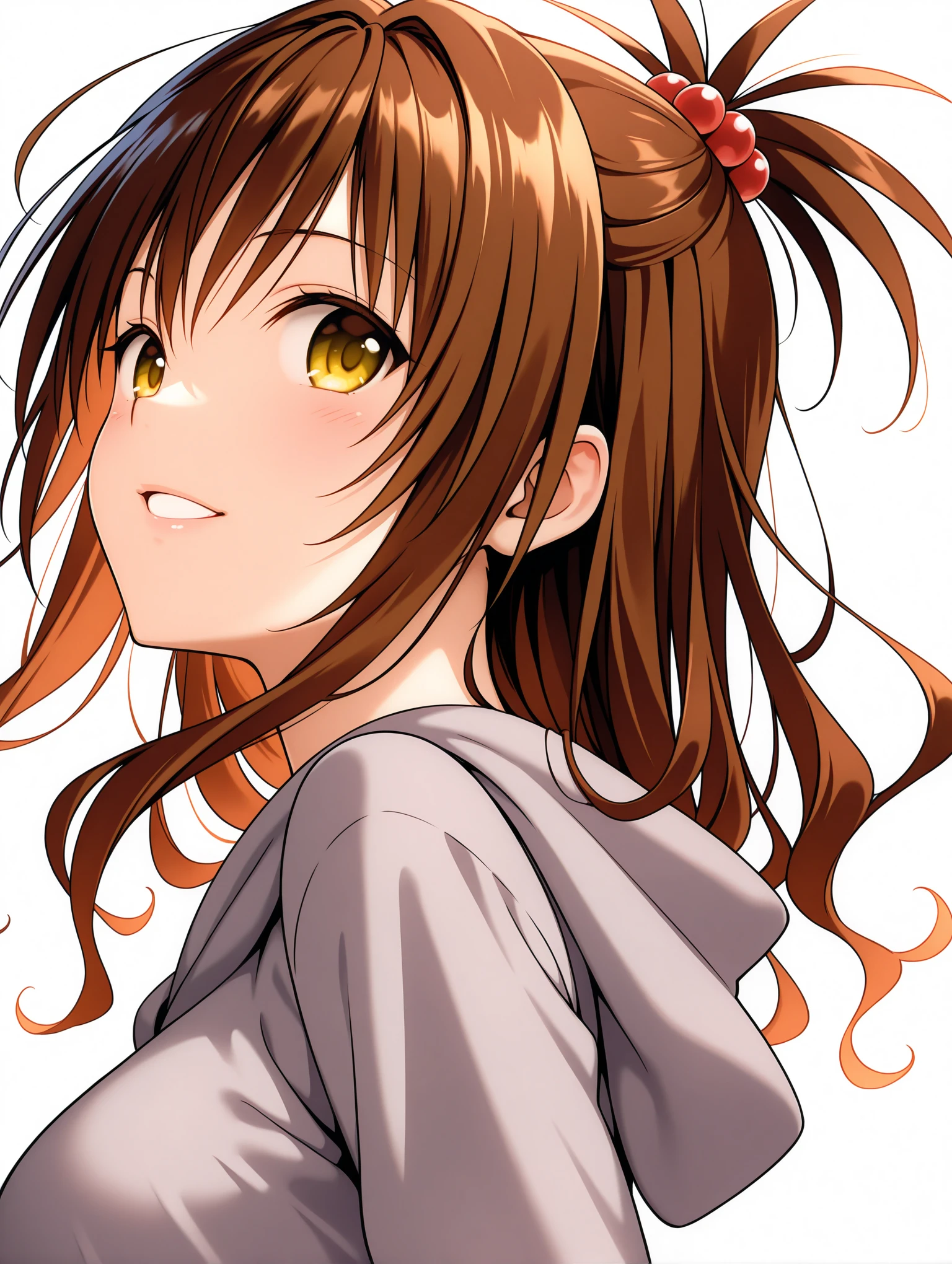 y_mikan,brown hair,long hair,yellow eyes,hair ornament,hair bobbles,