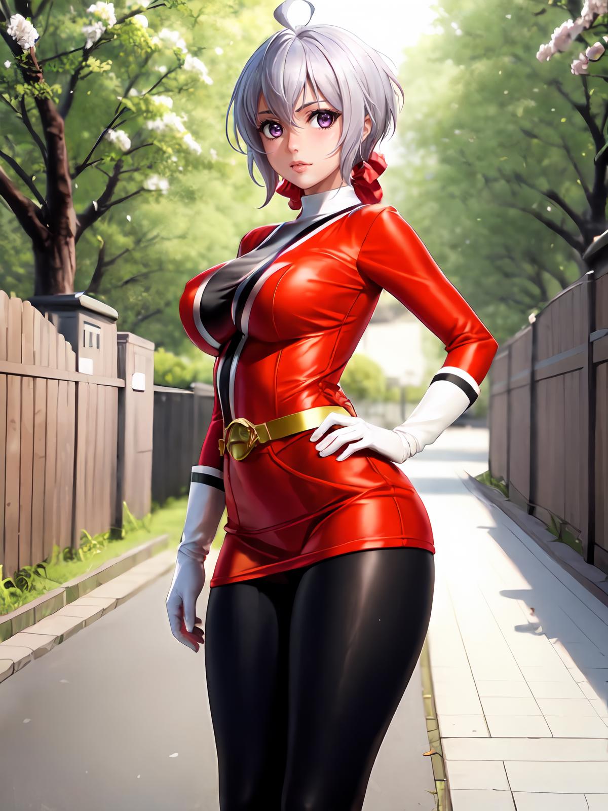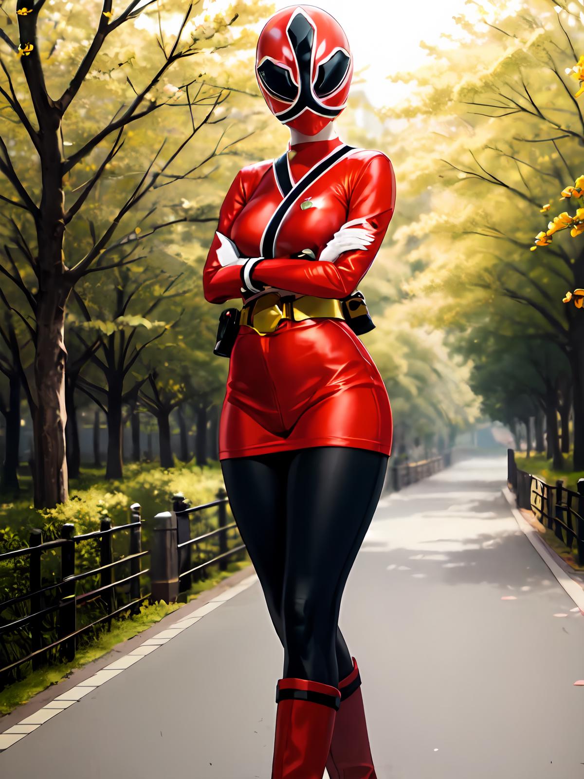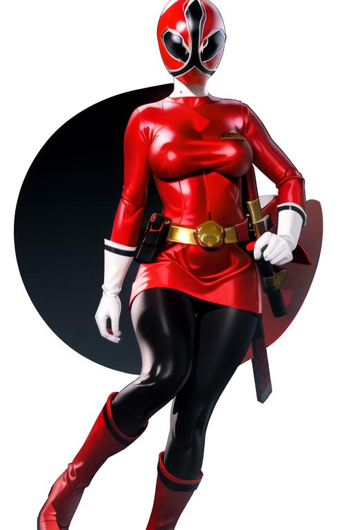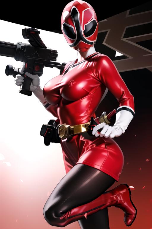 Prompts: Red bodysuit,pantyhose,red footwear,white gloves,bodysuit,boots mask,helmet,belt, gloves,