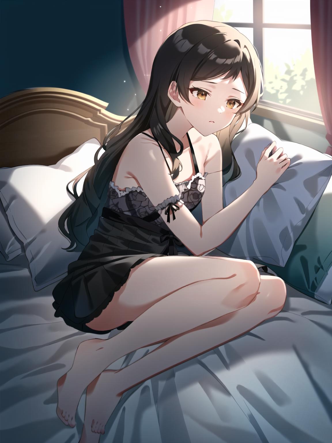 本模型内置四套服装,如果你想要志保的私服,请使用shifukuSH tag,如果私服不显示,可以增加stripd T-shirt和miniskirt这两个tag。如果你想要「三姉妹カフェ[黒猫]」卡面上的服装,请使用catSH tag,如果你想要「孤島サスペンスホラー[メイド]」卡面上的服装,请使用maidSH tag,如果你想要「MILLION LIVE CONFERENCE!」卡面上的服装,请使用pajamaSH tag,如果以上三件服装不显示,请适当提高服装tag权重。
