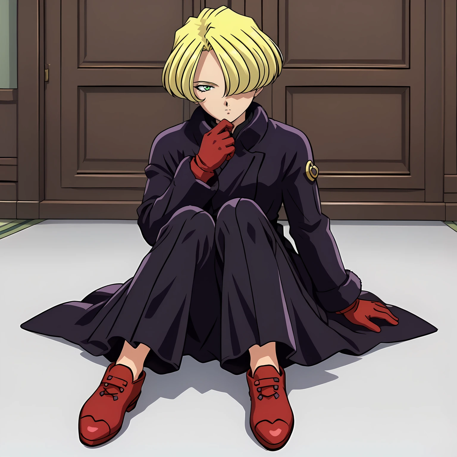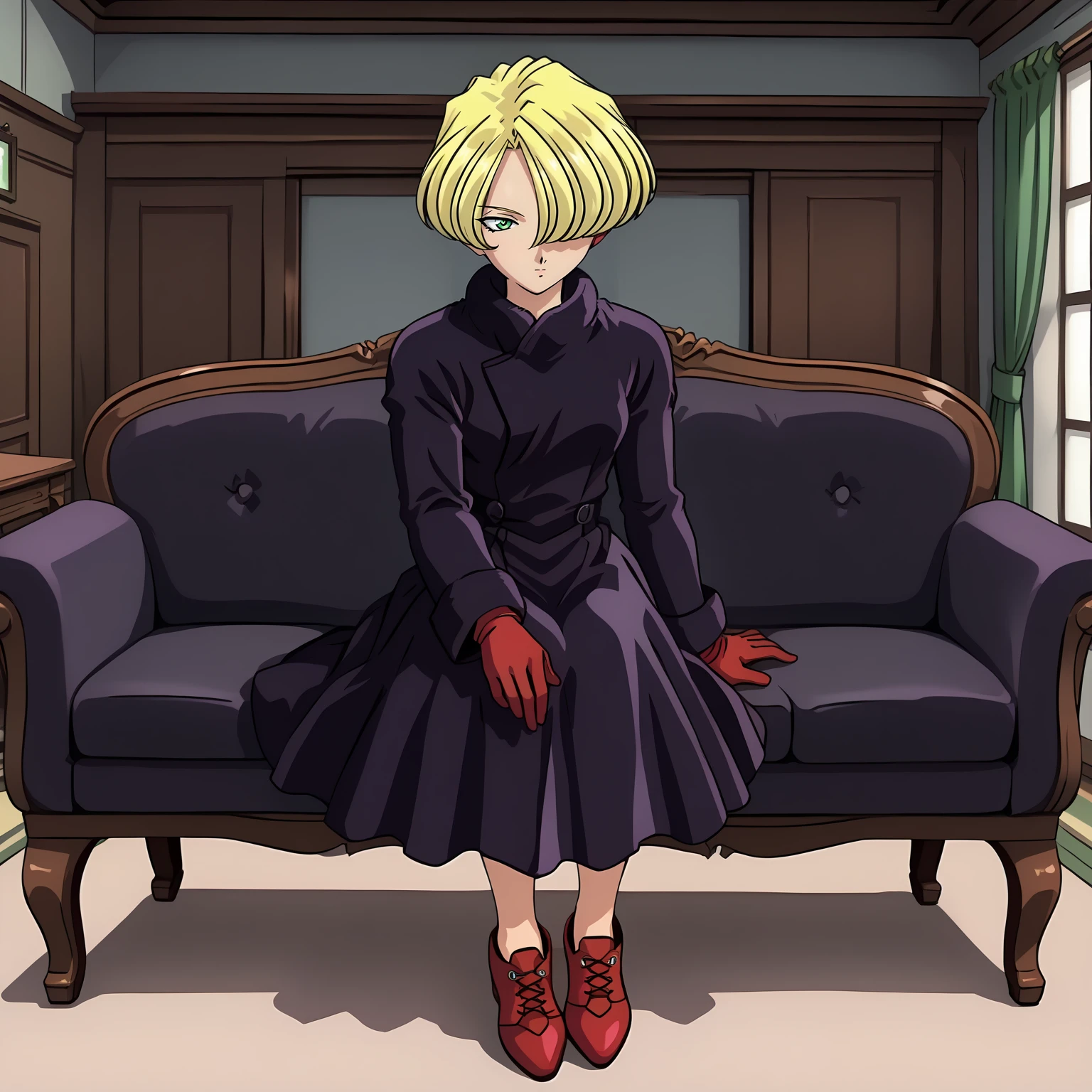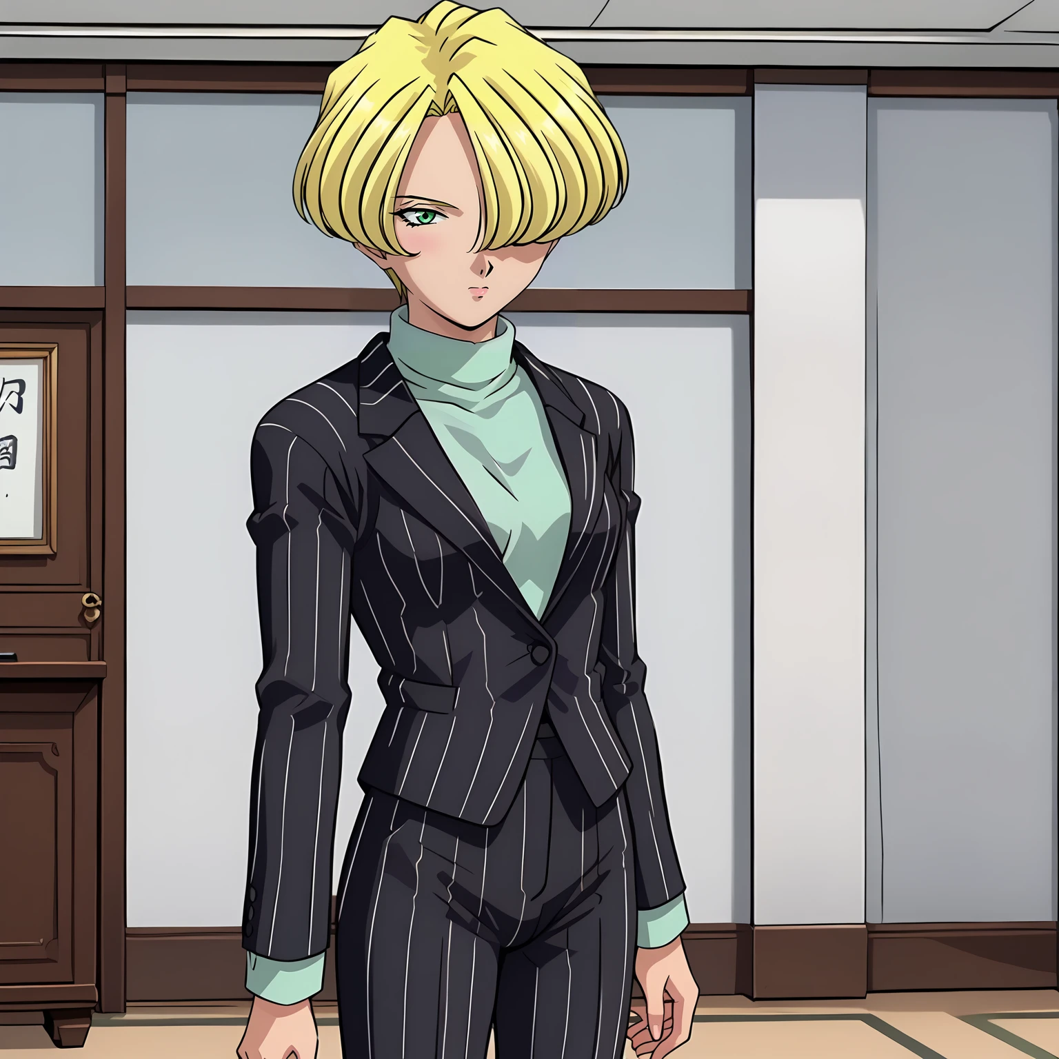 MariaTachibana,1girl,blonde hair,hair over one eye,short hair,green eyes,