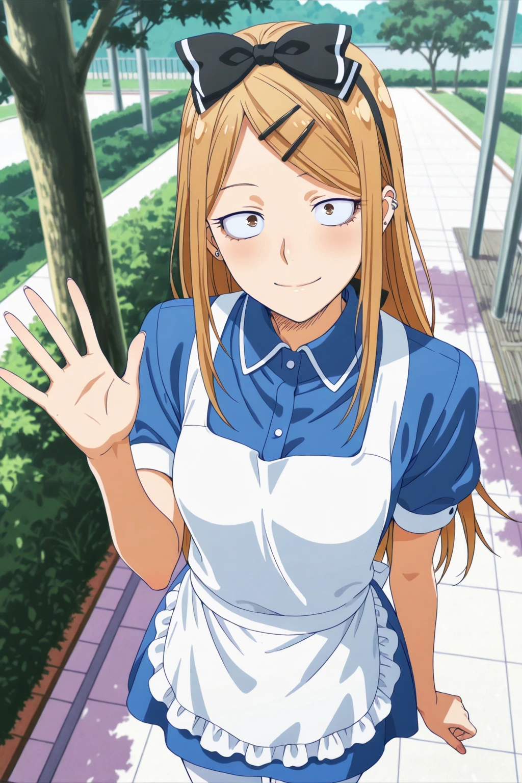 endou saya, long hair, blonde hair, hair ornament, sidelocks, brown eyes
