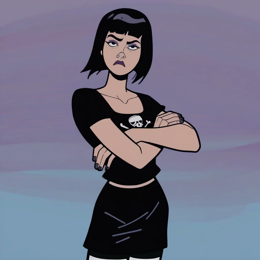 gothic, black hair, bob cut, blunt bangs, makeup, purple lipstick, purple eyeshadow, black eyes