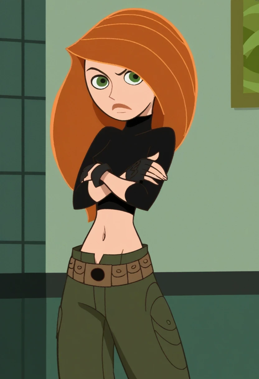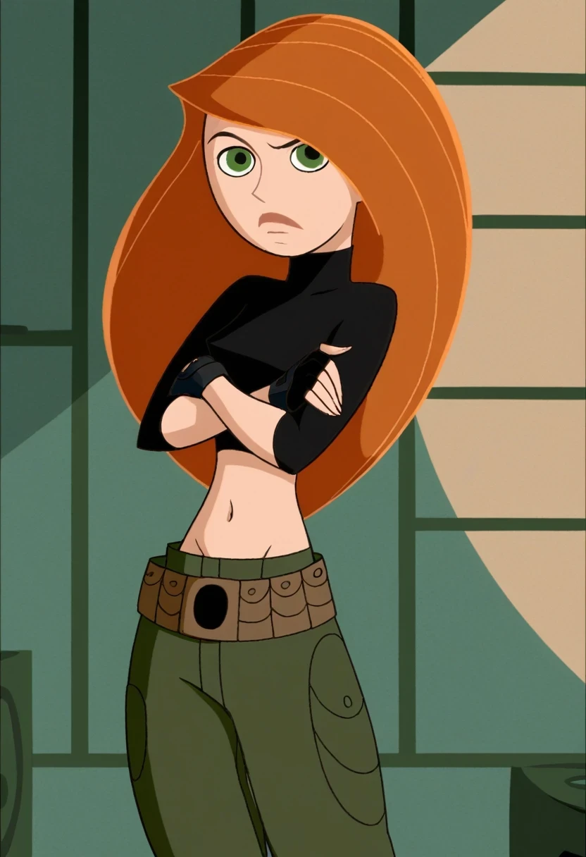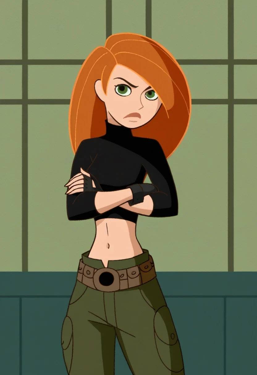 Trigger(s): KimPos, 1girl, green crop top, blue pants,