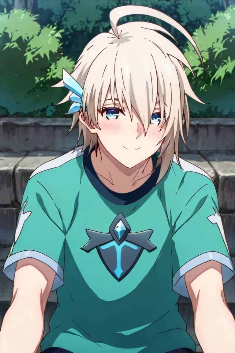 Pavel,white hair, blue eyes,hair ornament,ahoge,
