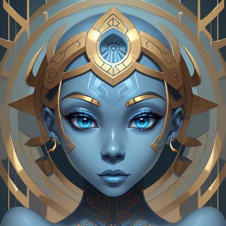 Blue and Gold Tribal Wear inspired by indigenous peoples, with a hint of anunaki/ancient aliens/primitive tech flair. Works well with realistic and/or anime models. Plays well with other lora too~