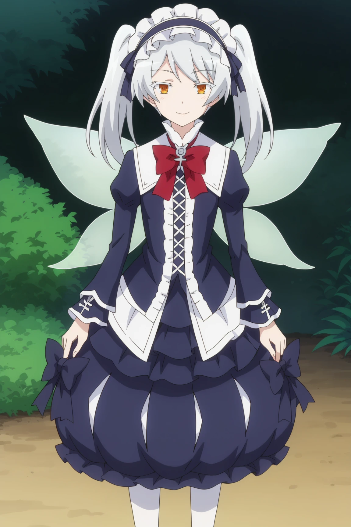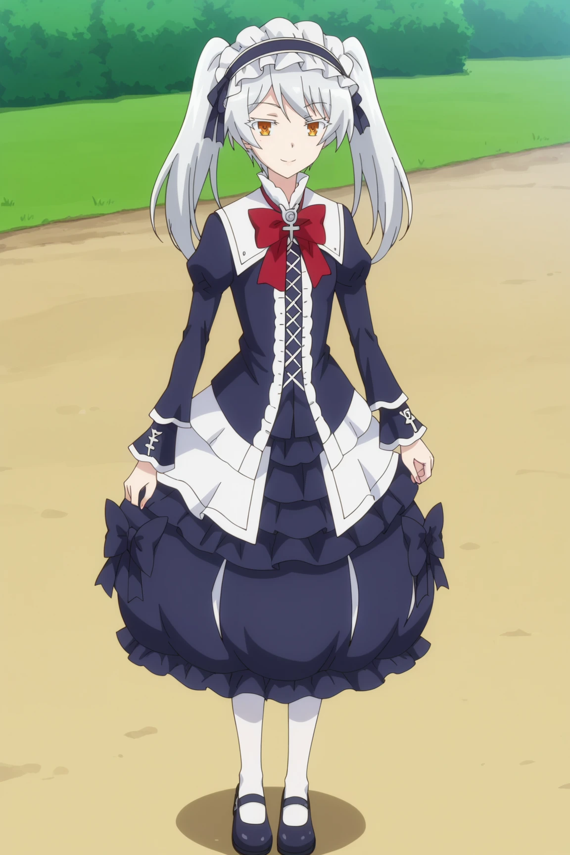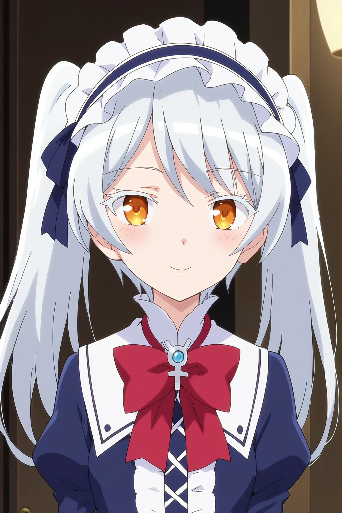 1girl, leen \(isekai wa smartphone to tomo ni.\), yellow eyes, white hair, long hair, twintails, small breasts, colored eyelashes,