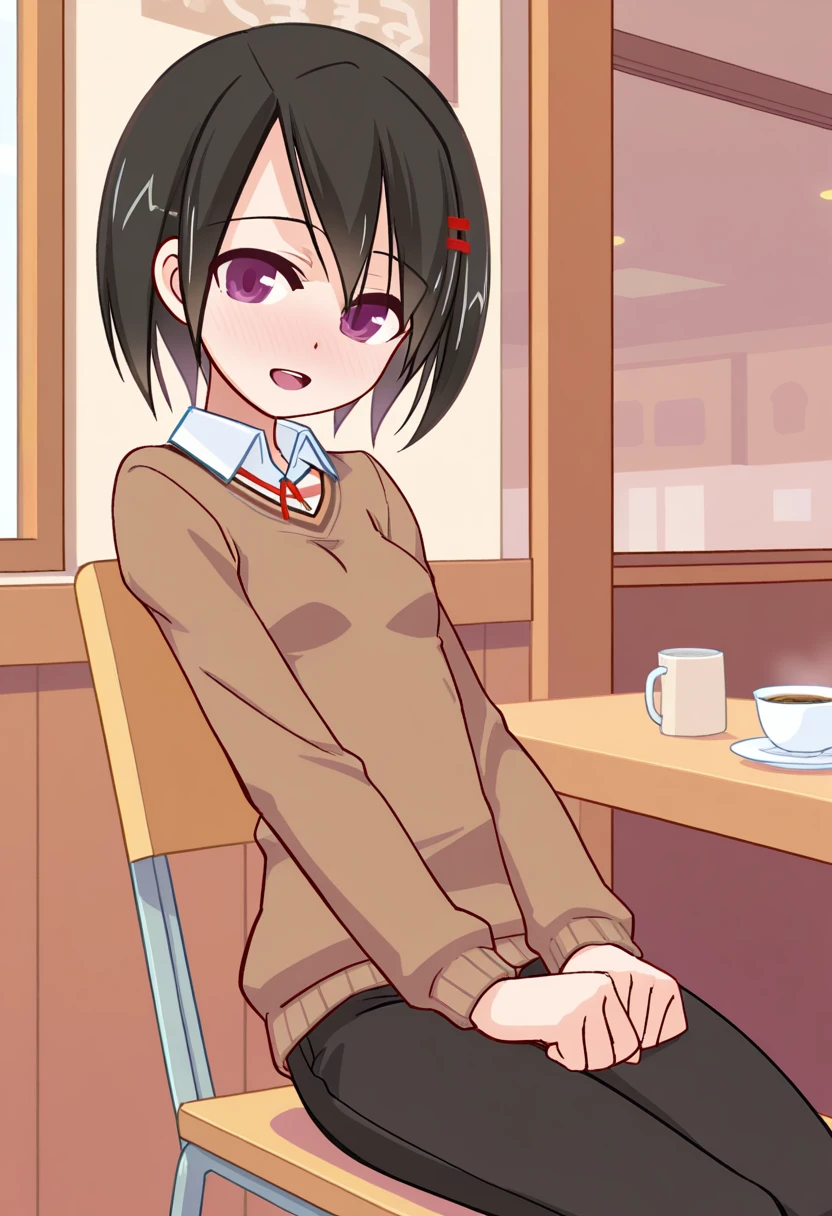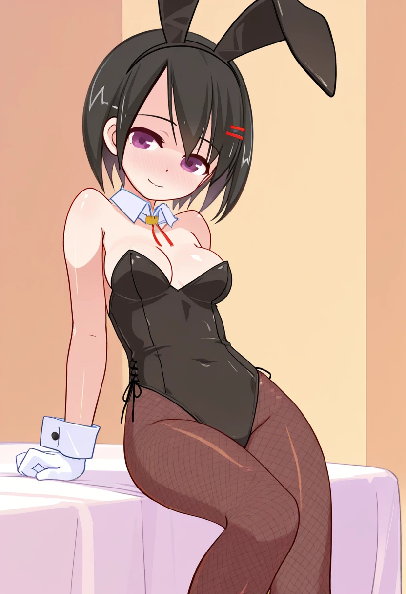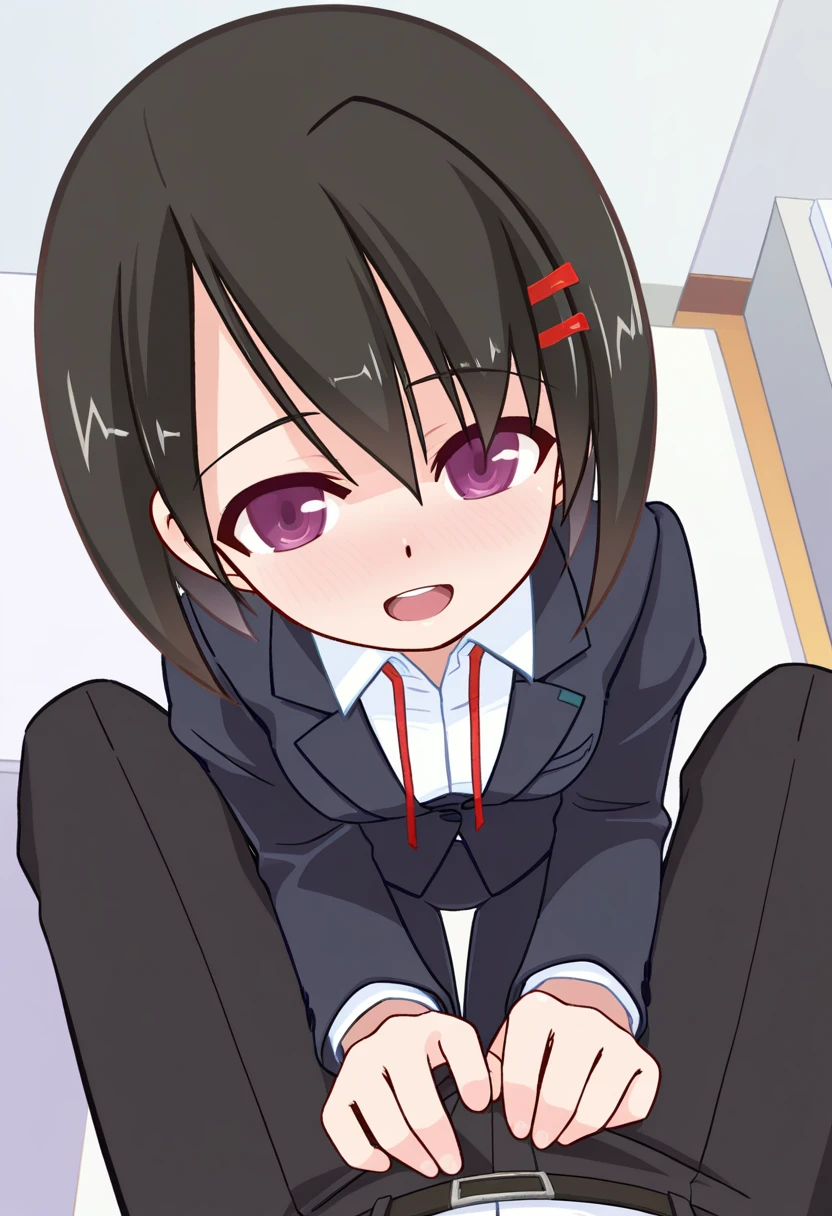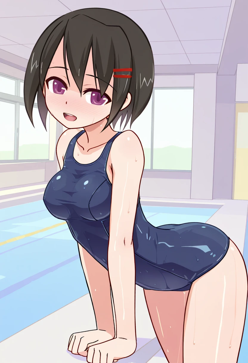 kamiyamaai, black hair, short hair, purple eyes, small breasts